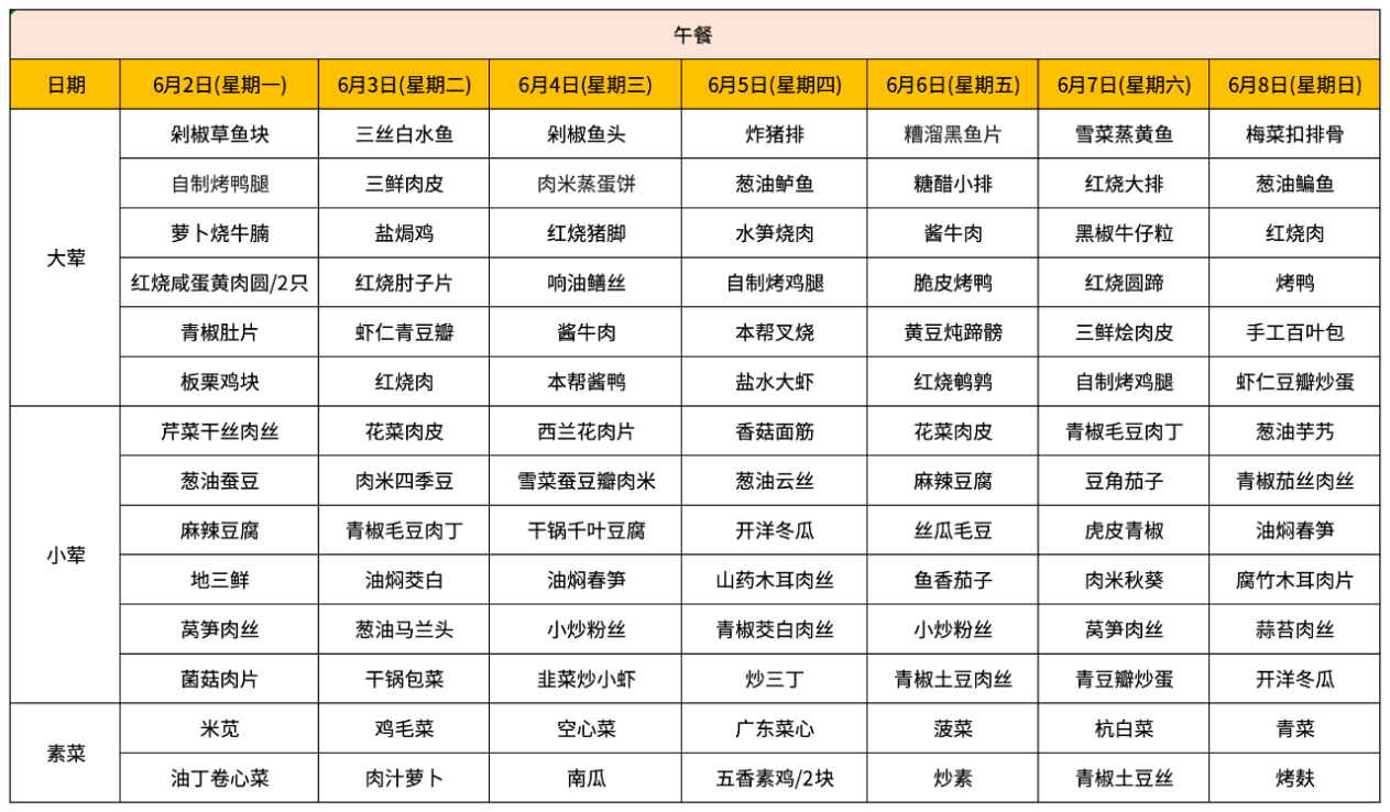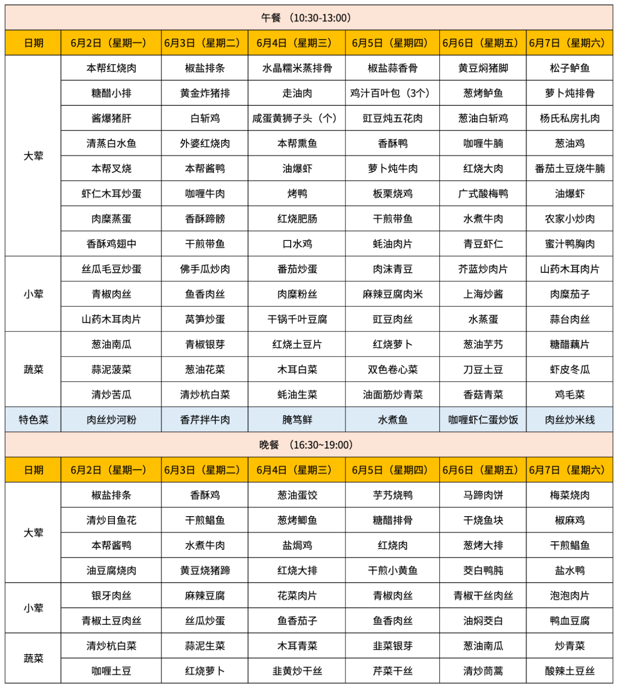 【TOP菜谱】桃浦社区食堂一周菜谱抢先看(6.2-6.8)