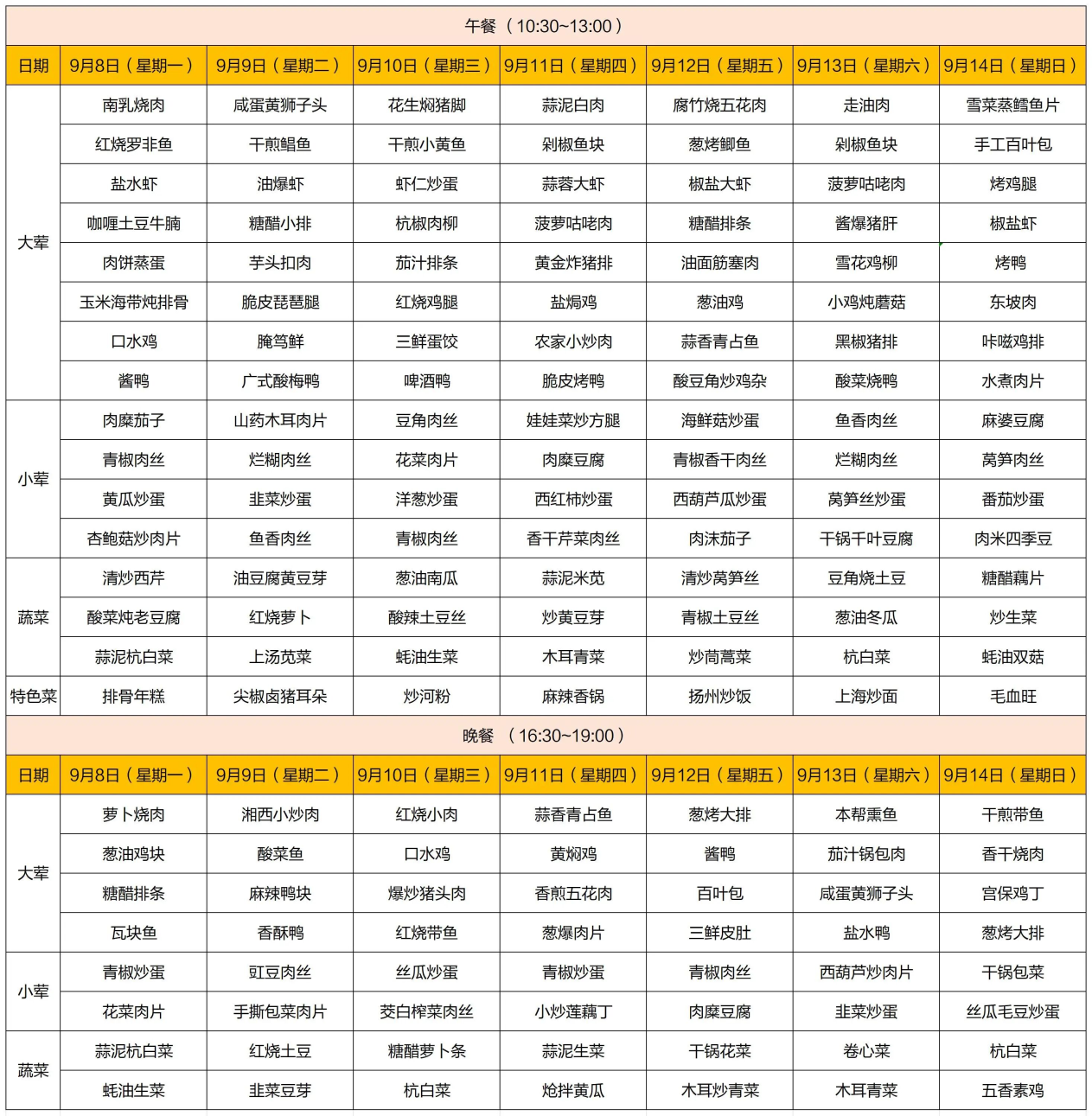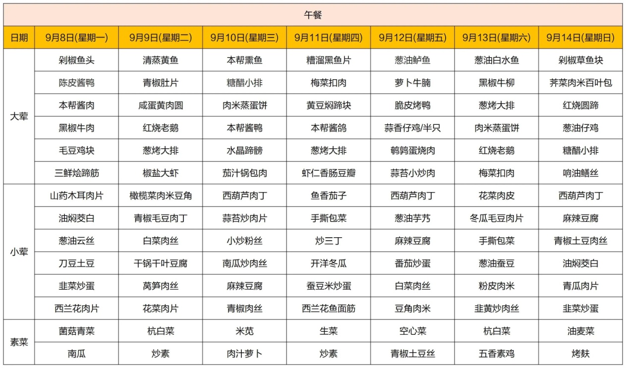 【TOP菜谱】桃浦社区食堂一周菜谱抢先看(9.8-9.14)