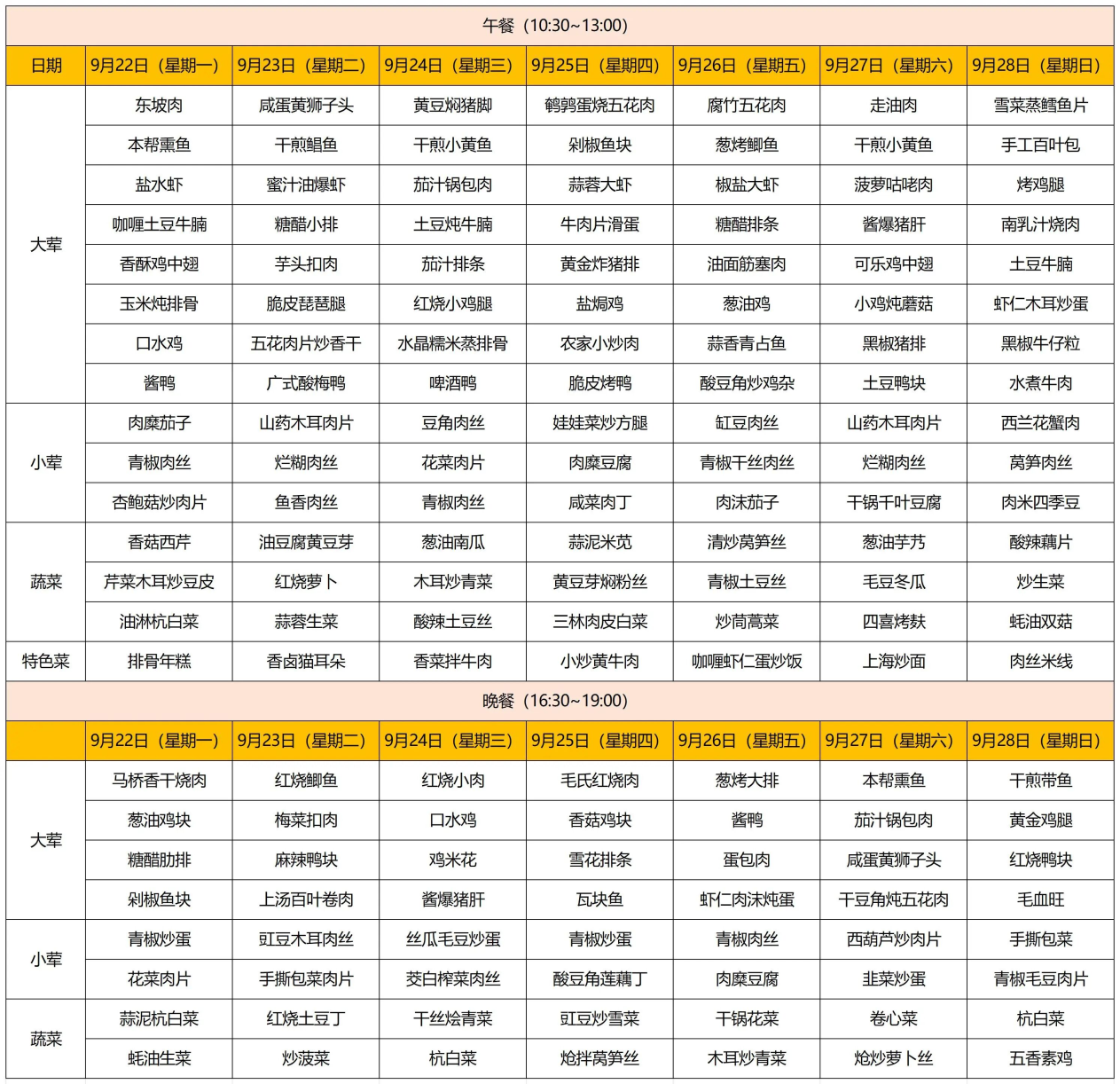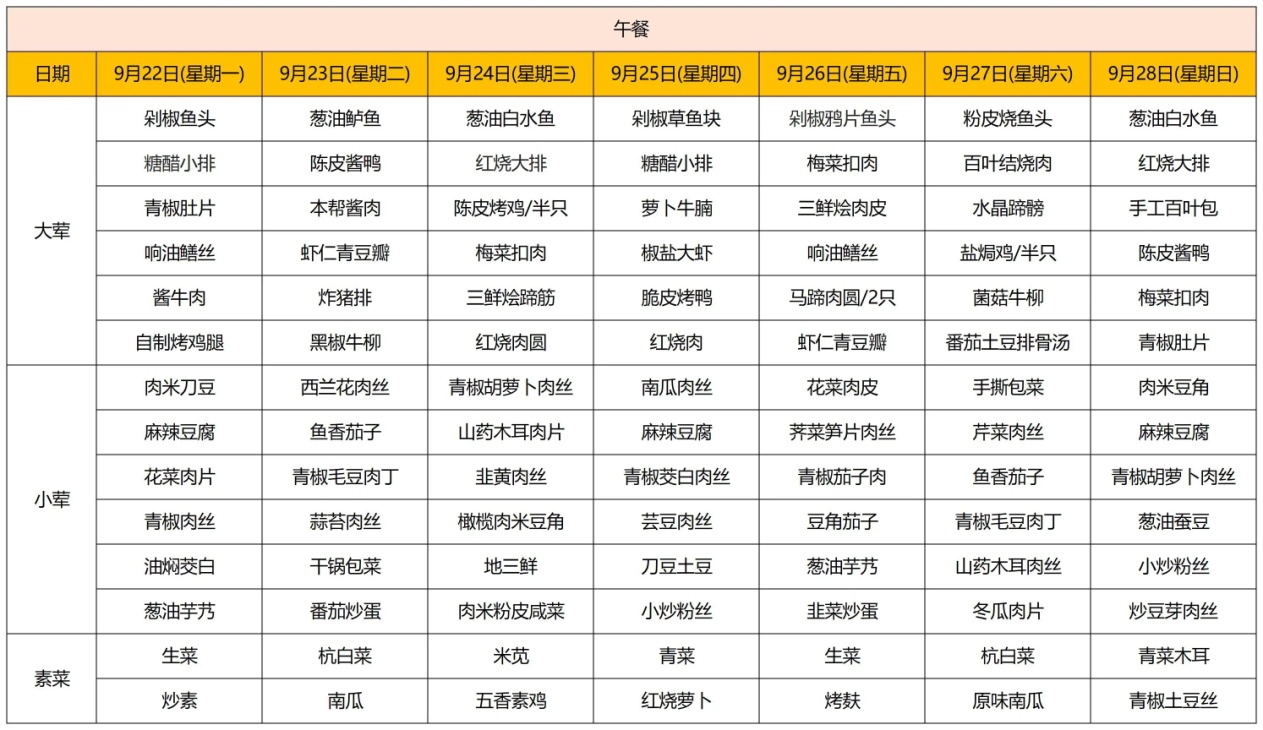 【TOP菜谱】桃浦社区食堂一周菜谱抢先看(9.22-9.28)