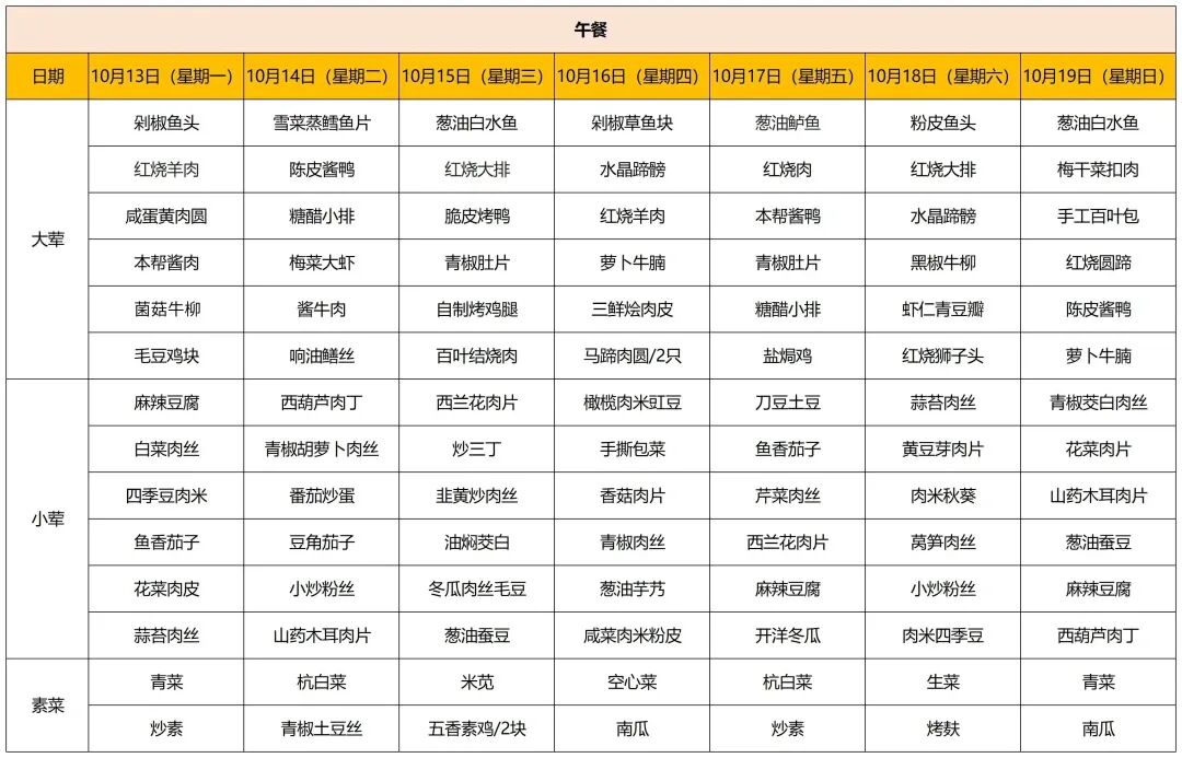 【TOP菜谱】桃浦社区食堂一周菜谱抢先看(10.13-10.19)