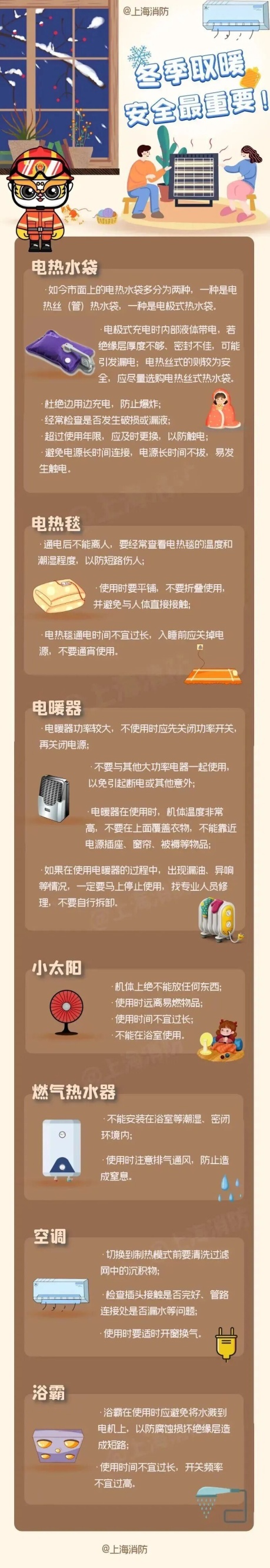 【TOP提示】周二气温降至个位数!这些取暖安全知识必须get→