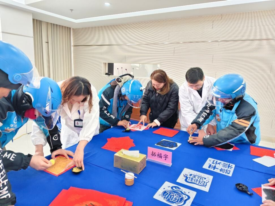 拓印、画糖画等非遗活动让骑手们爱不释手,领略到了中华优秀传统文化的深厚韵味;挂历、花灯制作环节同样溢满欢乐,大家自由挥洒创意、释放热情,惊喜的感叹、愉悦的笑容、放松的模样,成为党群阵地里最温馨动人的画面。