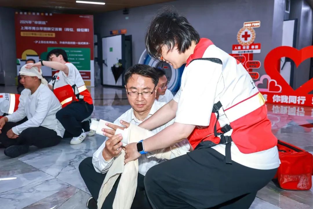 “现场发现4名‘伤员’,1人心搏骤停、无脊柱损伤;1人左前臂中段闭合型骨折;1人右侧头顶大出血;1人右侧脚踝扭伤。”桃浦企业园区“TOP红十字应急救护队”现场进行地震灾害应急救护情景演练。在队长的指挥下,队员们迅速检伤分类,完成了包括心搏骤停的伤员复苏、骨折的伤员固定等急救措施。数分钟内,所有伤员完成初步救治并移交120转运。