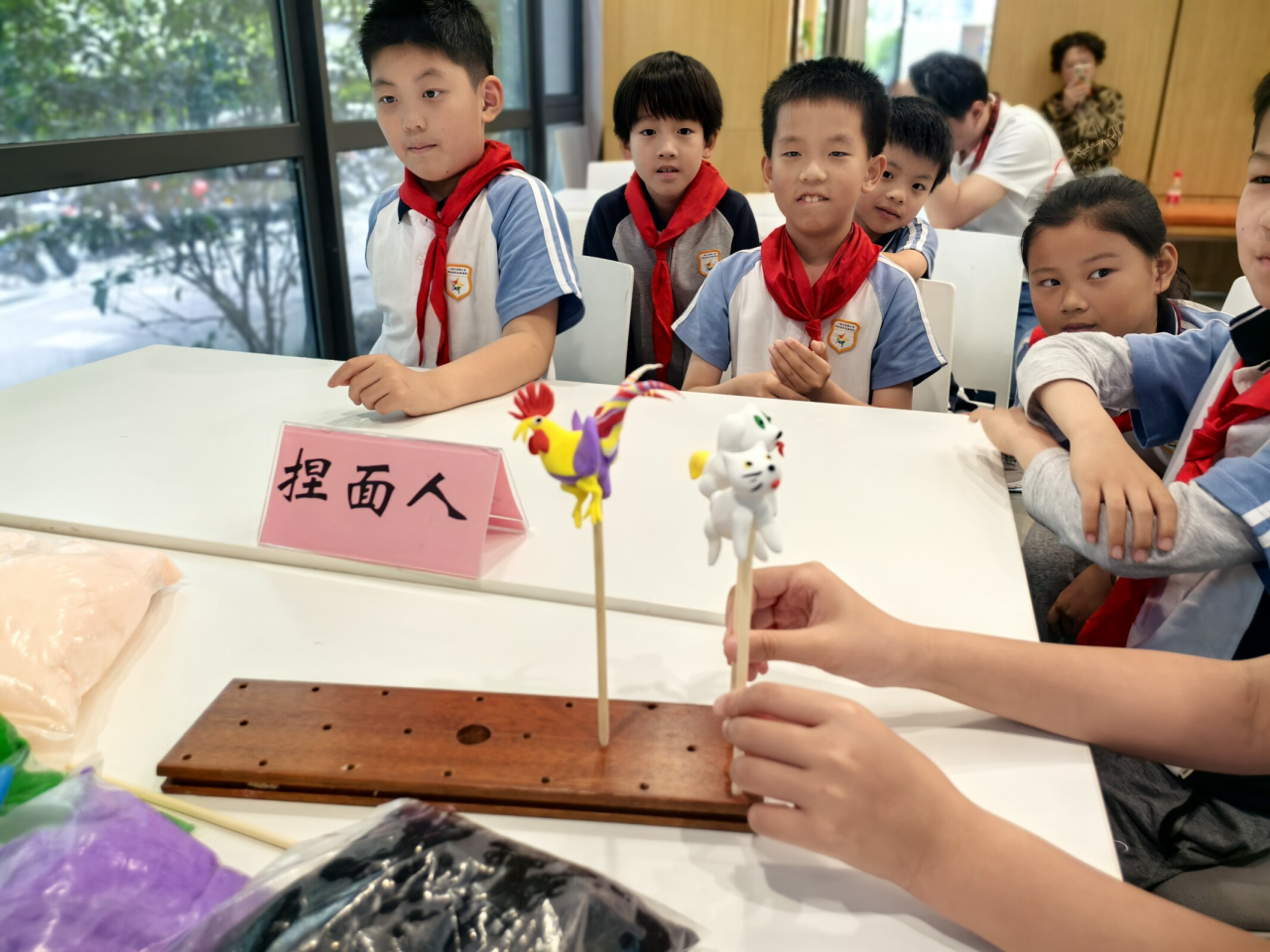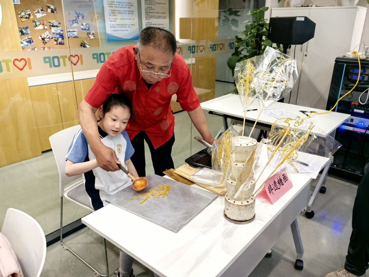 糖画摊位前,孩子们围聚在非遗传承人身边,看一勺热糖如何在匠人手下化作栩栩如生的蝴蝶、生肖;草编区中,稚嫩的小手跟着匠人编织蚂蚱、蜻蜓,感受 “化草为艺” 的神奇;中国结与捏面人摊位前,孩子们专注地穿针引线、揉捏塑形,将对传统文化的好奇化作一个个精美的手工作品。这场 “可看、可听、可触” 的非遗活动,让青少年在沉浸式体验中领悟非遗的智慧与美感,成为传统文化的 “小小传承人”,更在心中播下创新传承的种子。