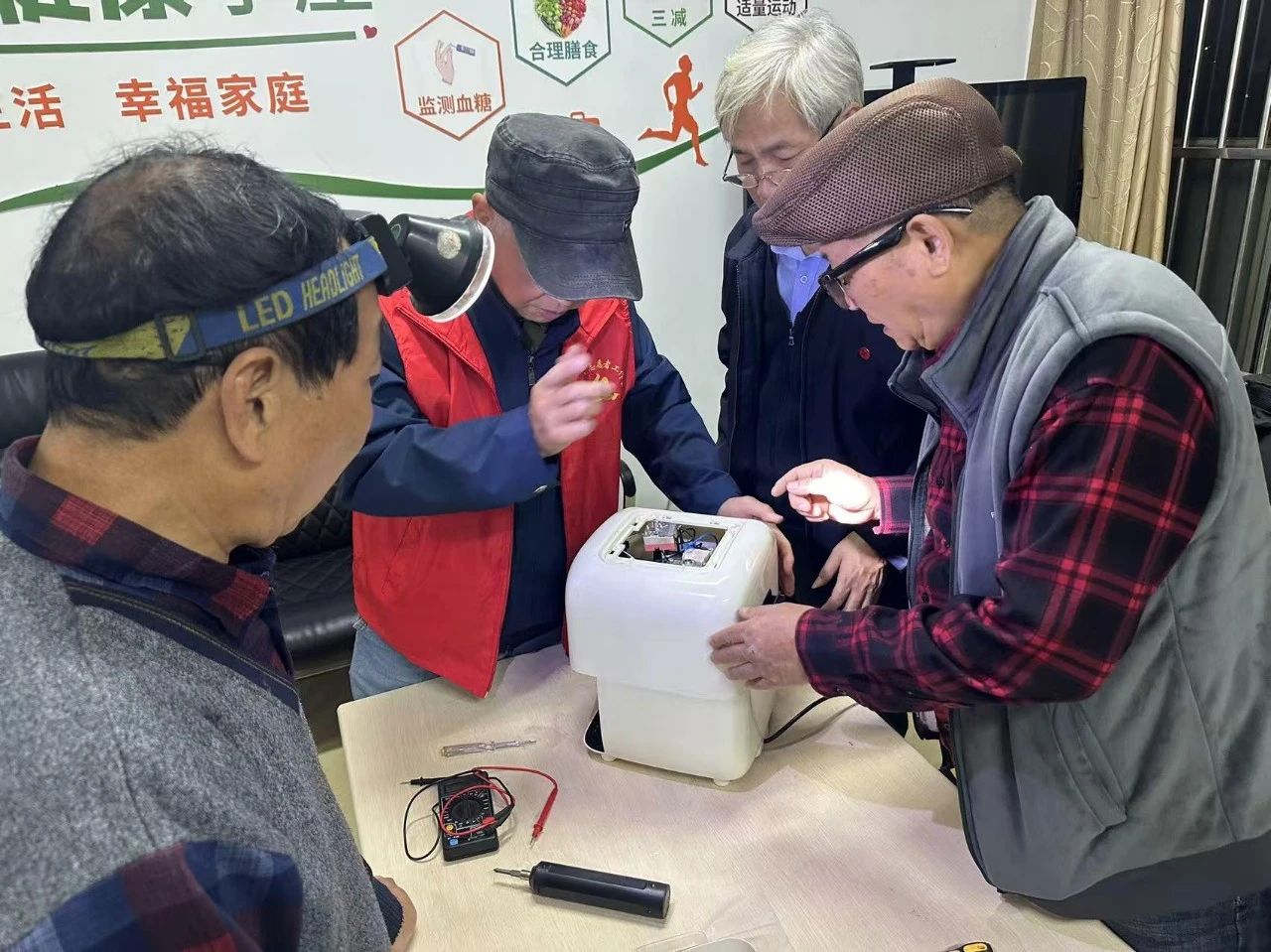 维修坊成员胡师傅退休前是一位经验丰富的专业电工,如今他依然在社区里发挥着光和热。社区里住着不少独居老人,生活中难免会遇到些小麻烦:也许是灯突然不亮了,也许是插座出了点小问题,这些困扰看似微小,却实实在在地影响着他们的生活。每当这时,老人们只需向居委会提出维修需求,居委会便及时协调,将这份“请托”传递给“99匠心老友维修坊”。胡师傅无论寒暑,总是带着工具箱欣然前往,耐心细致地为老人们免费解决这些小难题。