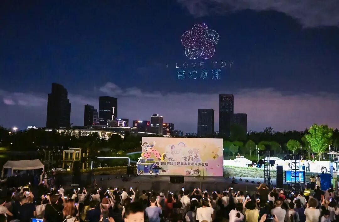 傍晚时分,逐光大合唱精彩开启。loveradio金曲争霸赛选手与民间歌唱爱好者组成的领唱团轮番登台,经典歌曲伴着乐队伴奏响起,现场大屏同步滚动歌词,市民跟唱不断。随后,无人机表演点亮夜空,与悠扬音乐交织成绝美画面,将氛围推向高潮。