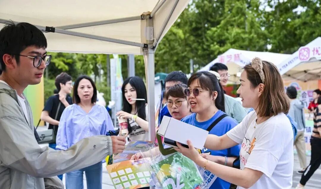 互动区同样热闹,巨型奶茶杯打卡点前市民争相拍照,“奶茶叠叠乐”游戏充满欢声笑语,环保工坊里手作达人指导用奶茶杯制作文创品。不少市民集齐15个摊位打卡,顺利兑换包含坐垫、灯光棒、防蚊贴的大合唱礼包,收获满满。