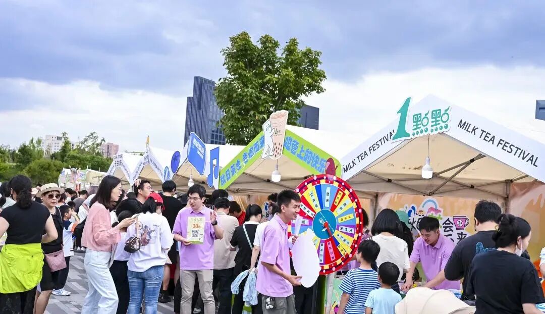 现场摊位中,既有本土老字号餐饮企业推出的季节限定新品,也有文创工作室自主研发的国潮周边。15个网红帐篷摊位沿湖铺开,茶涧集、食光集、简物集、绿境集、文创集五大区域特色鲜明。茶涧集的秋季限定茶饮试饮排起长队,食光集的甜品与奶茶完美搭配,绿境集的可降解吸管、环保杯传递绿色理念,文创集的秋日潮玩吸引年轻人驻足。