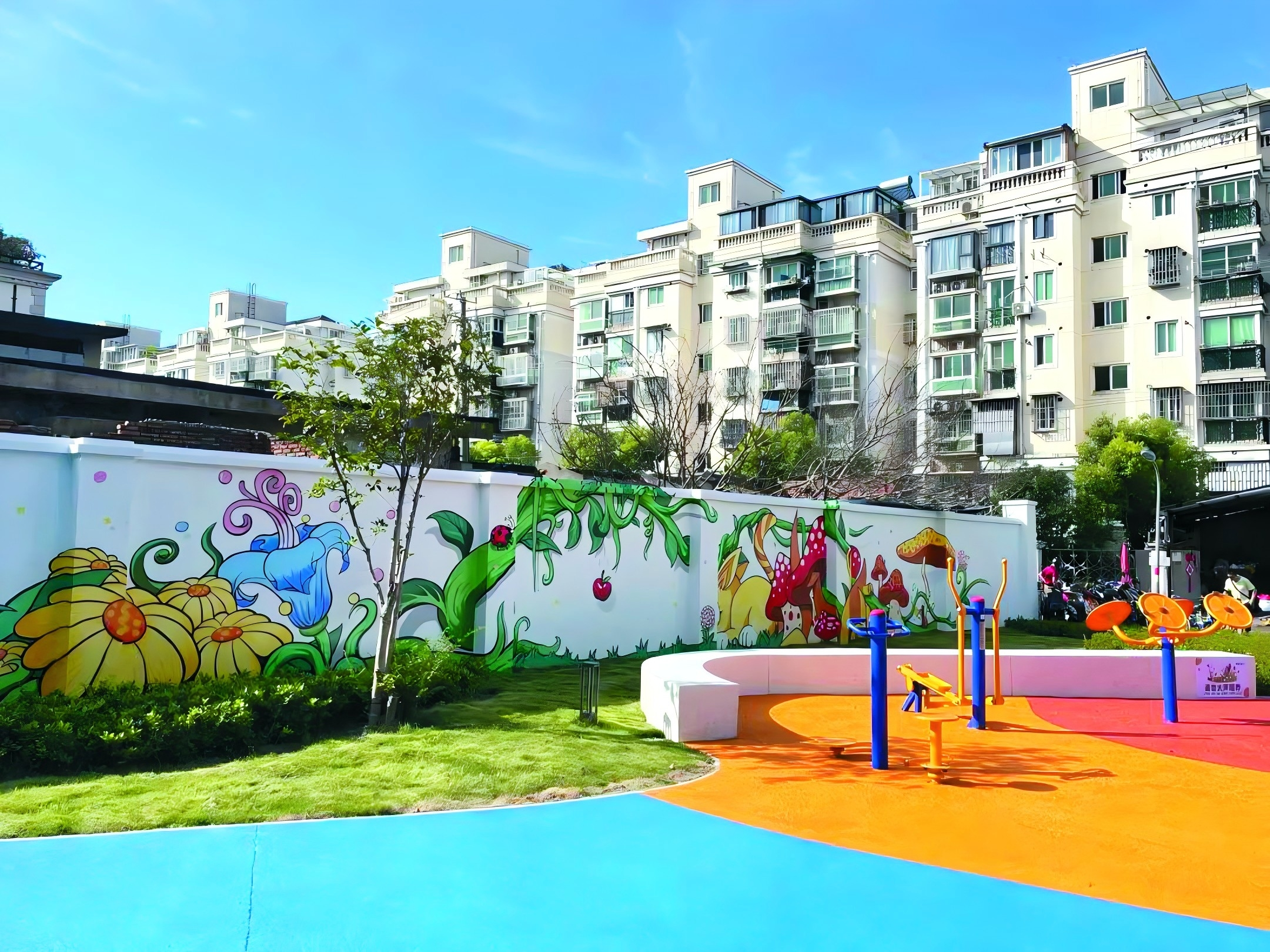 自今年6月建成以来,这片约1000平方米的口袋公园成为了集儿童游乐、休闲健身、便民停车于一体的多功能社区共享花园。