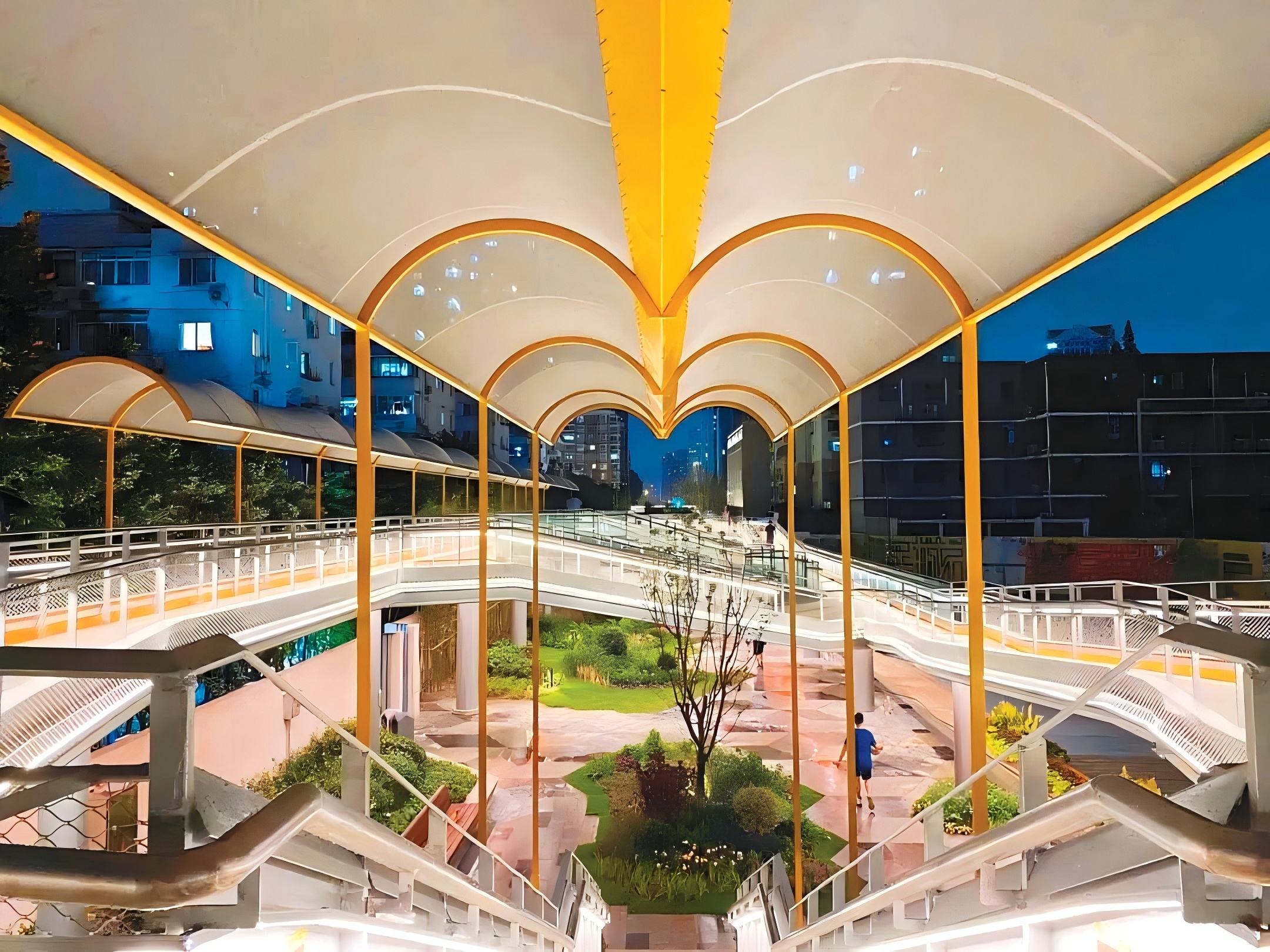 曹杨新村还打造了沪上首座“高线公园”——百禧公园,并持续推进环浜贯通工程,建设独具特色的文化传承带、睦邻交往带、蓝绿生态带,为居民提供了更多亲近自然、交流互动的公共空间,增强了社区的生态和文化氛围。同时,桂巷驿站(桂巷坊)、枫桥驿站、社区党群服务中心等公共生活重要枢纽也得到了焕新升级,为居民提供更贴心、更舒适、更时尚的社区服务与游憩环境,曹杨新村1.0“建圈”行动成功收官。