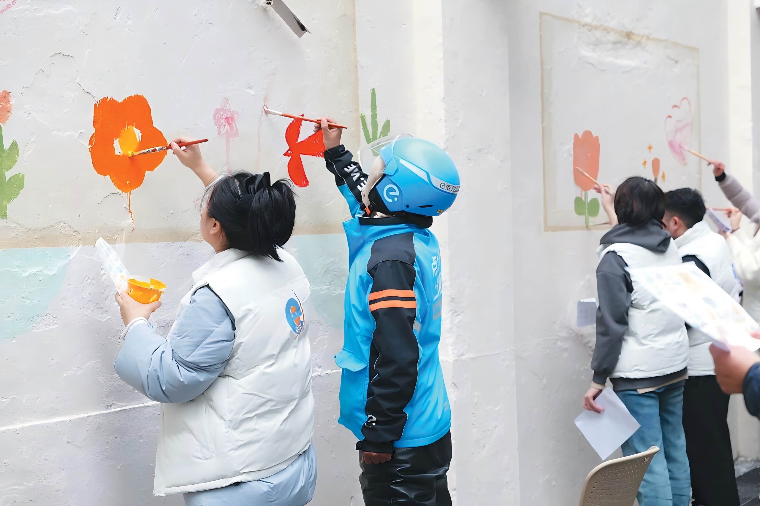 彩绘当天,志愿者们拿起画笔,化身“墙绘师”,尽情地描绘着自己心中的美好世界,为项目的实施注入无限活力。多位路过的居民被现场氛围所感染,驻足观看后也纷纷拿起画笔,加入到绘画过程中。现场,大家徜徉在彩色的世界里悠然自得,不时传来大家的欢声笑语。