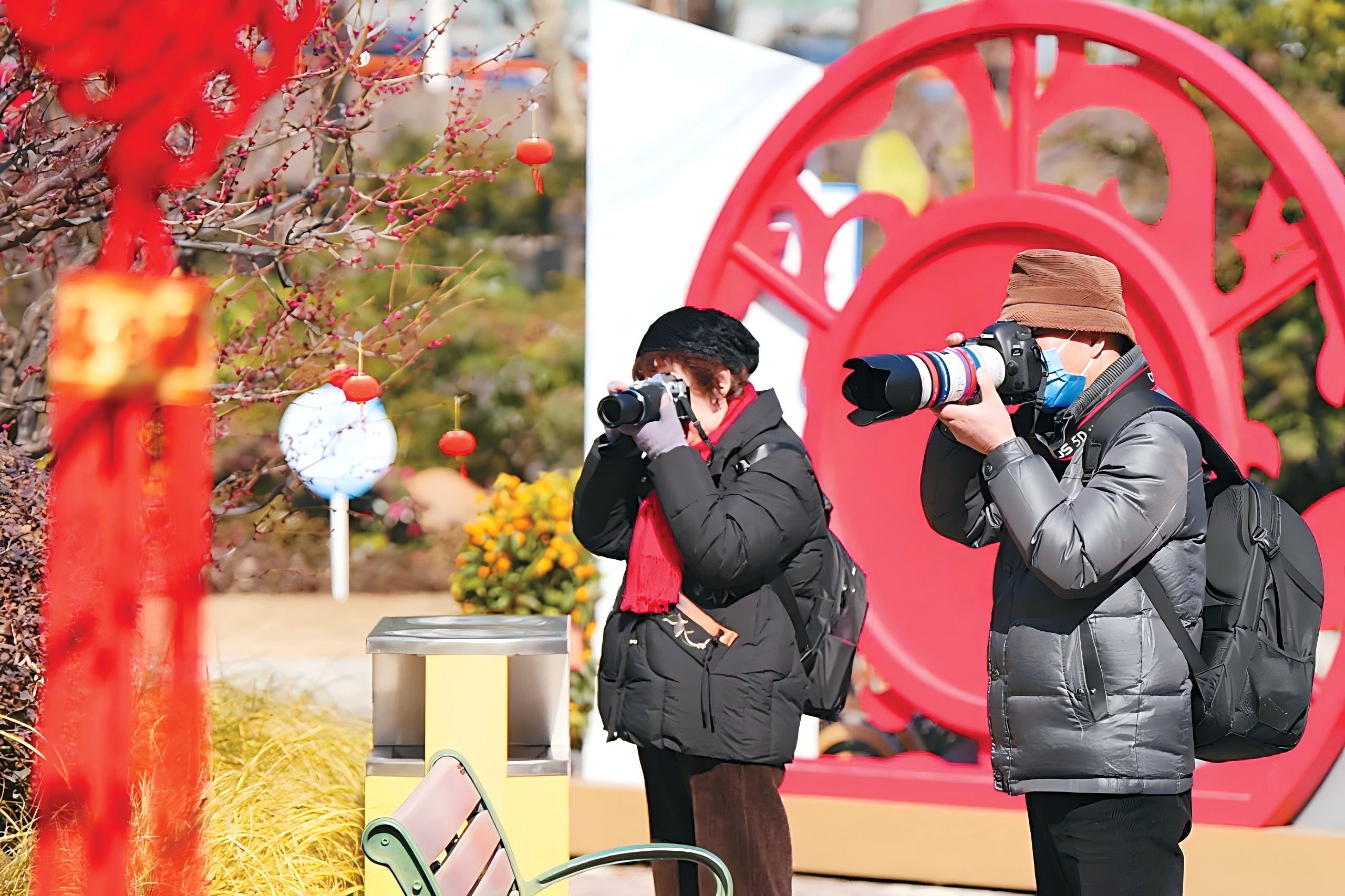 市民将镜头对准盛放的梅花