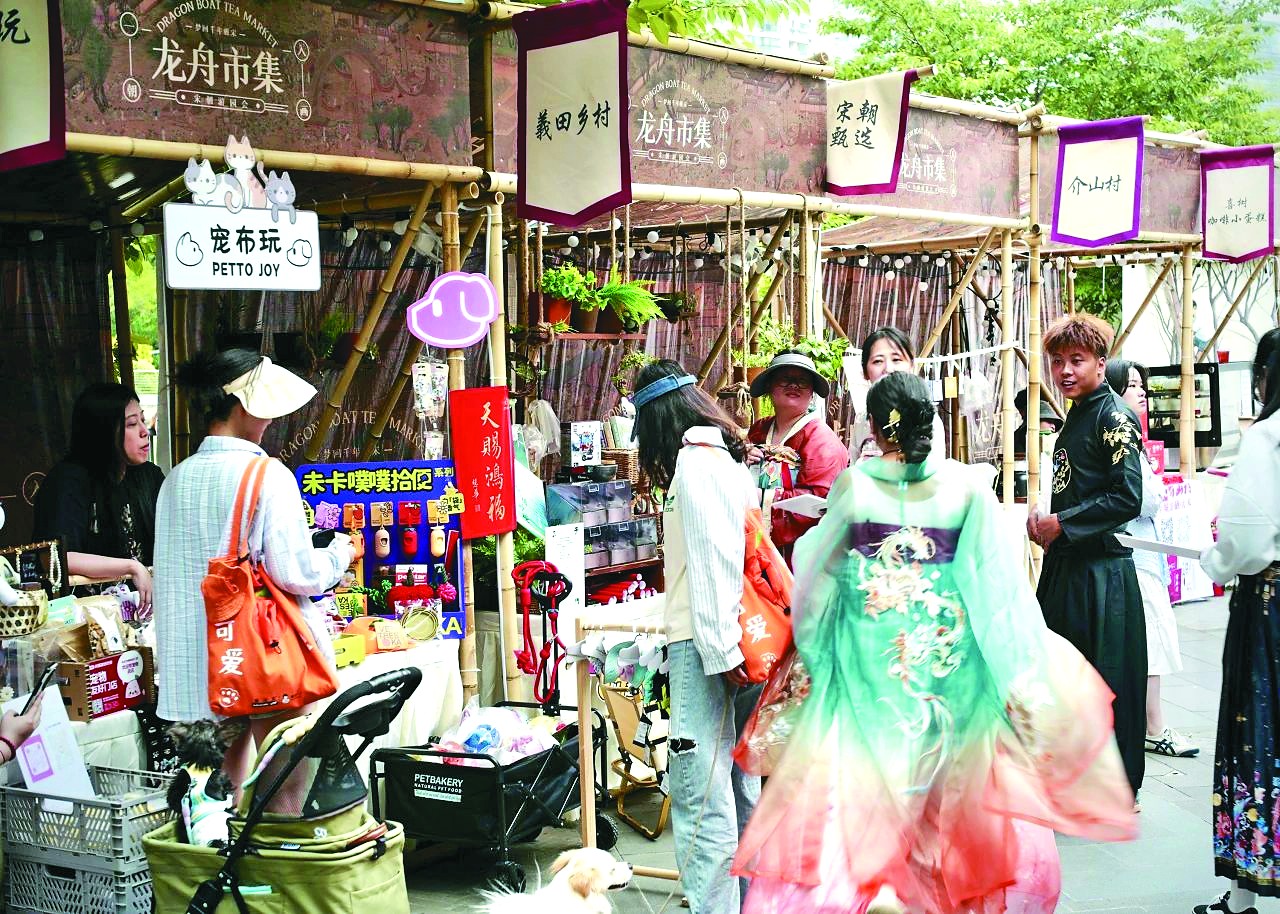 作为今年“五五购物节”的特色IP活动,普陀“龙舟上河图”主题市集5月31日至6月2日端午假期期间继续开放。