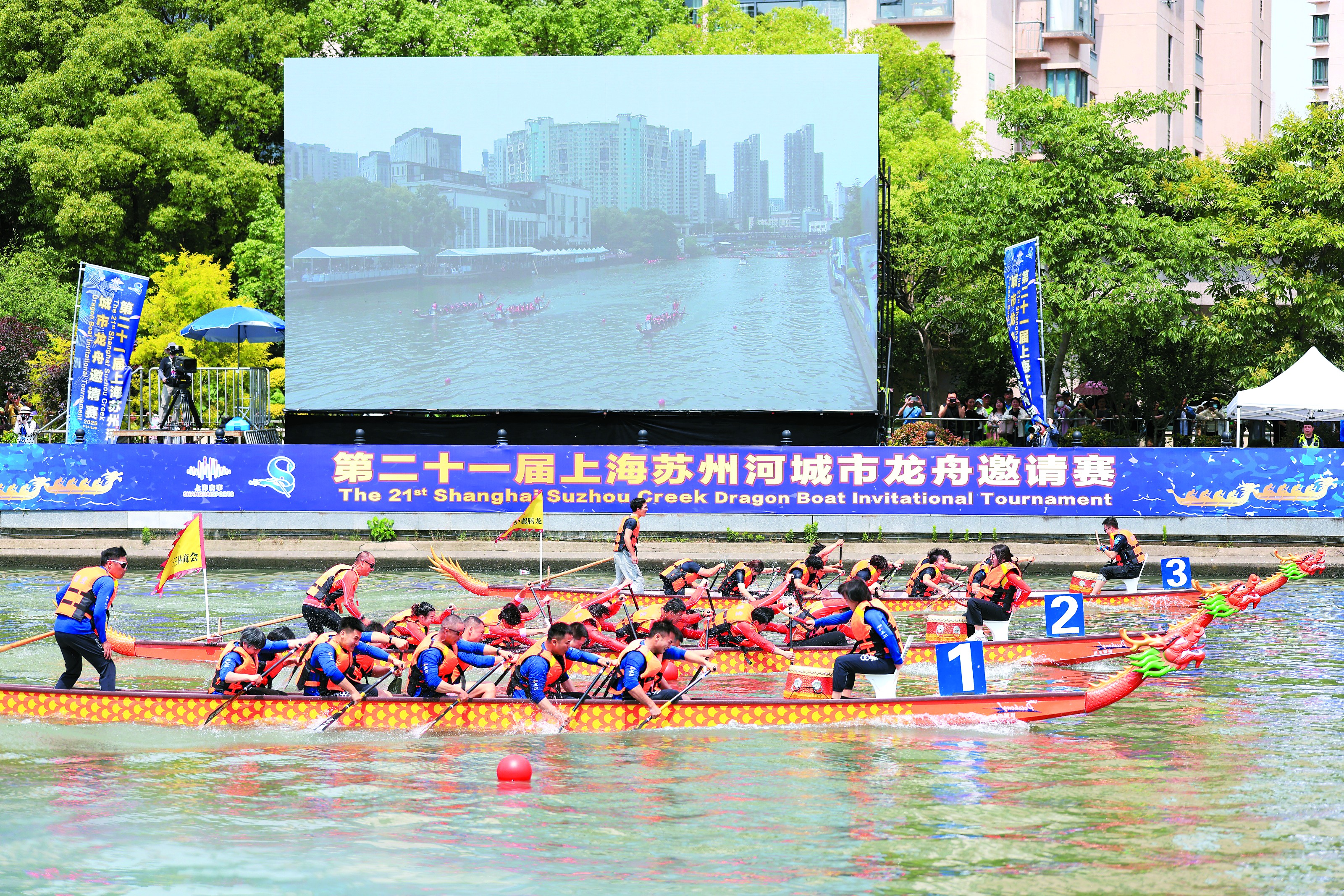 5月25日,第二十一届上海苏州河城市龙舟邀请赛在普陀区中远两湾城·梦清园水域落下帷幕。来自不同国家和地区的58支龙舟队在普陀“半马苏河·七彩秀带”的滨水画卷上,共同描绘“龙耀苏河、向新而行”的热闹景象,演绎“速度与激情”的体育盛事。