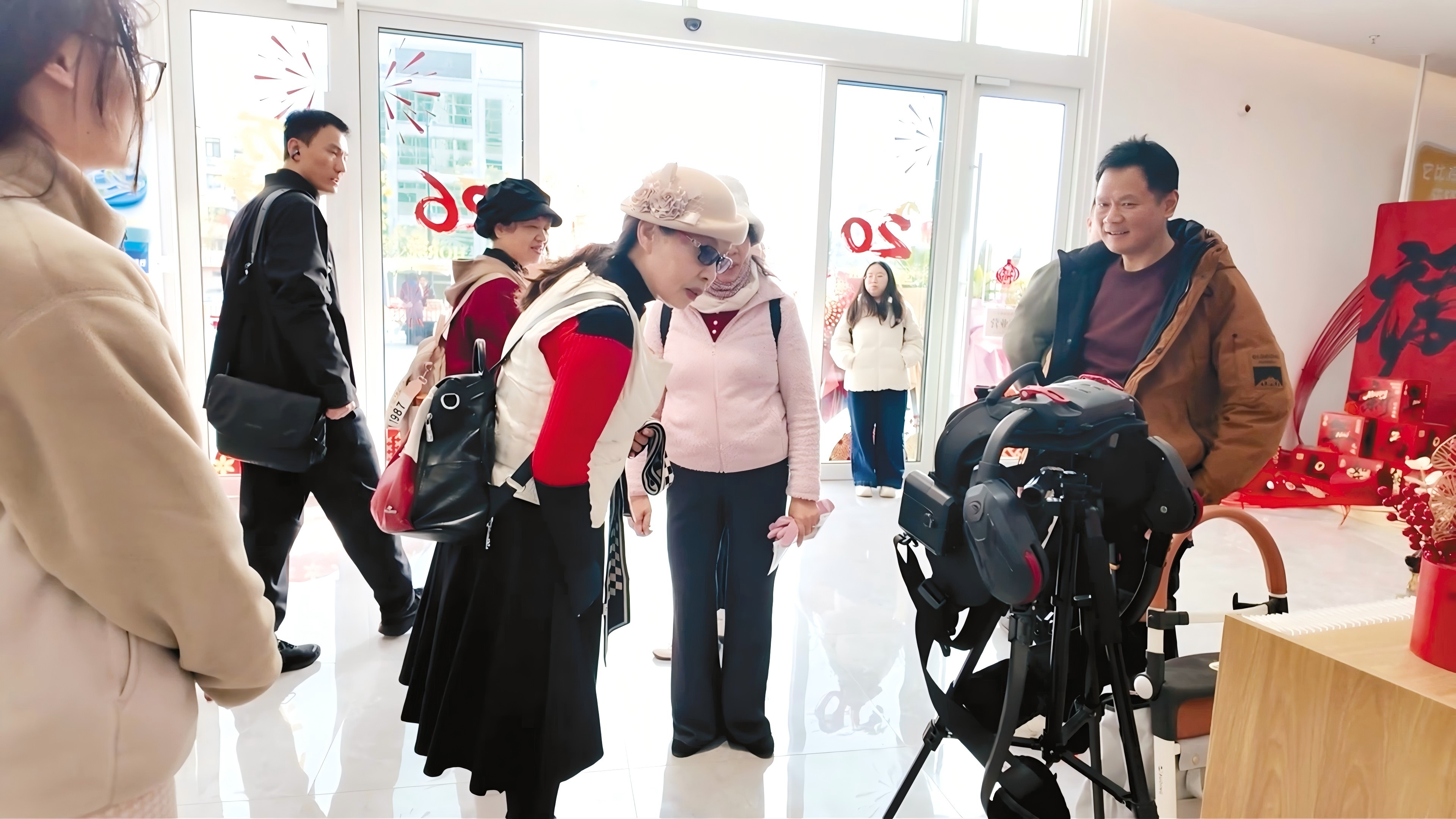 位于普陀区普熙金融广场D栋1楼的上海银发商店,开业第一天就引流无数,不少老年人结伴前来参观体验。