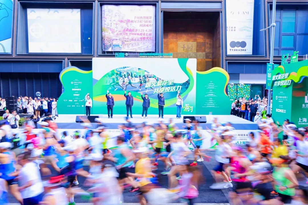 赛前的起跑仪式上,上海市体育局党组书记、局长徐彬,上海市普陀区委书记胡广杰,上海市普陀区人大常委会主任谈上伟,上海市普陀区副区长王珏,东浩兰生(集团)有限公司副总裁周瑾,中国农业银行上海市分行党委委员、副行长翟冀等领导和嘉宾共同为2025中国农业银行上海市分行上海苏州河半程马拉松赛鸣枪发令。现场,还有来自南京市、无锡市、常州市、苏州市、南通市、镇江市、泰州市“沿沪宁产业创新带”七市领导嘉宾参加起跑仪式。