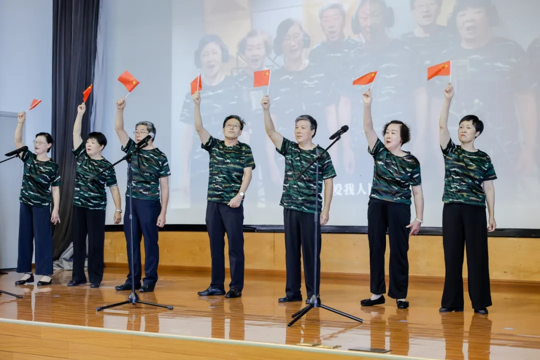 曹杨社区百灵鸟合唱团现场演绎双拥主题歌曲《爱我人民爱我军》。