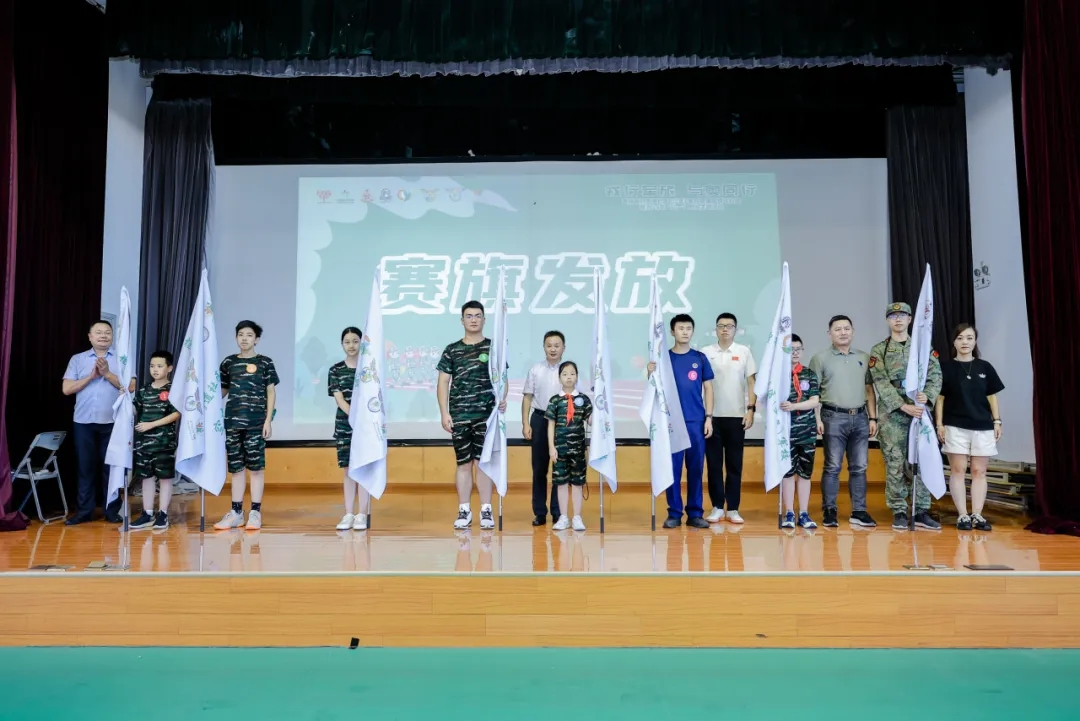 军体运动的8支参赛队伍集结完毕。普陀区退役军人事务局副局长姚红权、普陀区体育局副局长汤郭平、普陀区教育工作党委副书记钱俊、普陀区国防动员办公室副主任金洪涛、街道办事处副主任张磊为队伍发放赛旗及赛事装备。