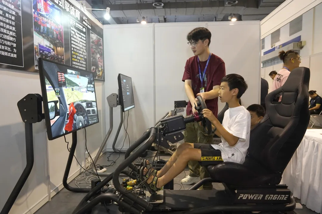 正值暑假,不少学生在父母的带领下也来到科技体育博览会的现场体验不一样的展览体验。在赛车模拟器展台,王同学正盯着屏幕开着模拟赛车感受着真实的赛场竞技,“今天是我第一次开这样的大型模拟赛车,转弯时方向盘也会同时抖动,非常真实。”而在一旁的模型军舰展位,不少市民也在争先恐后地拍照留念。“之前只能在电视上看到这些军舰,今天能够这样近距离地观察,我感到非常兴奋。”正在拍照的曹先生正用相机记录下这一难忘的时刻。