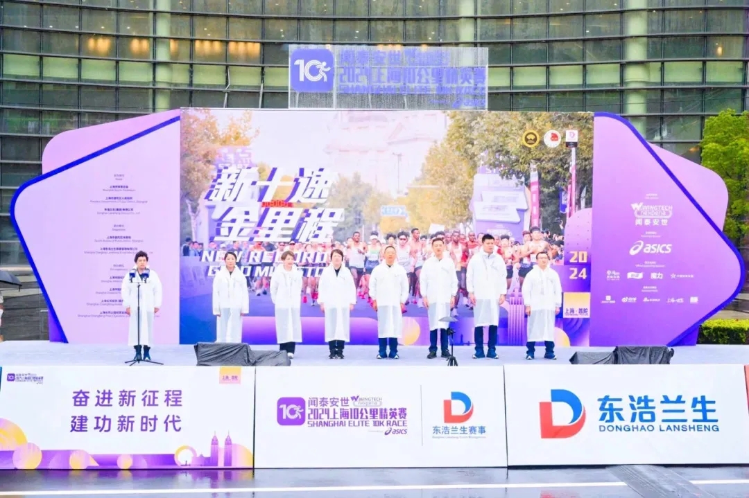 起跑仪式上,普陀区委副书记、区长肖文高,区人大常委会主任谈上伟、区政协主席杭春芳,市体育局副局长罗文桦,副区长王珏,东浩兰生(集团)有限公司副总裁周瑾,安世半导体中国区销售与市场部负责人李东岳、亚瑟士(中国)商贸有限公司市场部高级总监顾晓洁等领导及嘉宾共同为2024闻泰安世上海10公里精英赛鸣枪发令。