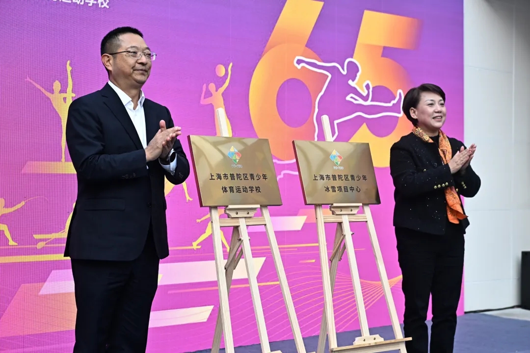 近年来,在普陀区体育局、教育局的联合推动下,“人人上冰”计划火热开展,“冰上人口”增势可喜。作为综合性体育后备人才培养单位、国家高水平体育后备人才基地的普陀少体校,承载起培养更多冰雪项目竞技人才的责任。校庆现场,普陀少体校“上海市普陀区青少年体育运动学校”以及“上海市普陀区青少年冰雪项目中心”这两张“新名片”同步揭牌,前者代表着少体校乔迁新校区的新生,后者则寓意着少体校在新时代下更多全新的职能。