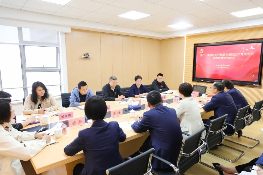 4月16日,普陀区体育局党组与农行上海普陀支行党委举行党建共建签约仪式,旨在通过建立共建合作关系,进一步凝聚双方合力,共同为区域高质量发展注入新动能。