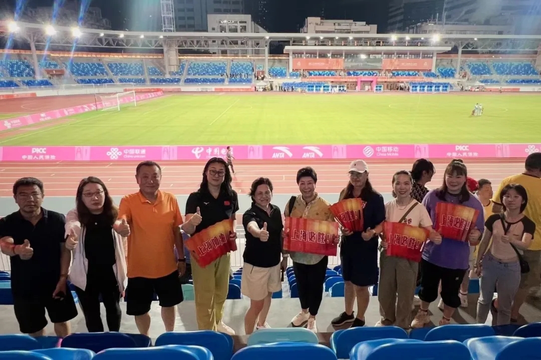 上海市体育局副局长罗文桦、普陀区副区长王珏和众多女足姑娘的亲友后援团来到现场,为球队加油助威
