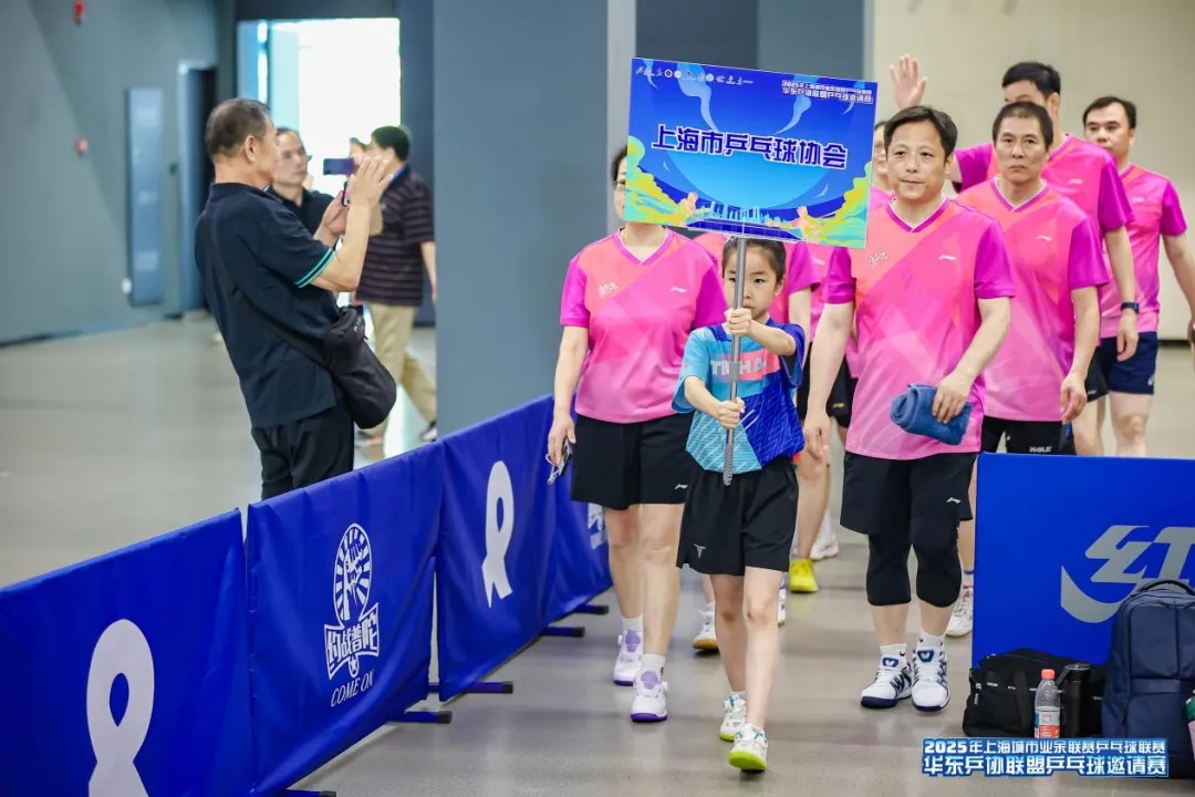 开幕式上,由国家级与国际级裁判组成的裁判团队率先入场,他们以 “公正执法、文明执裁” 的承诺为赛事保驾护航。紧随其后的各省代表队尽显地域特色:江苏省乒协携全运会群众比赛选手亮相,其 “爱乒才会赢” 球王争霸赛已成为民间乒乓球嘉年华;浙江省乒协选手怀揣 “顽强拼搏、勇攀高峰” 的信念,立志赛出浙江风采;安徽省乒协作为4A级体育社团,以 “公仆杯”“巾帼杯” 等多元赛事体系满足群众健身需求;江西省乒协首创会员段位制大赛,通过 “数字乒协” 建设实现赛事管理数字化;福建省乒协依托地缘优势,推动两岸体育融合;山东省乒协以 “齐鲁乒乓、勇攀高峰” 为理念,输送张继科等奥运冠军,其 “百县千乡” 联赛带动百万民众参与;东道主上海市乒协代表队秉持 “重在参与、健康快乐” 的东道主精神。