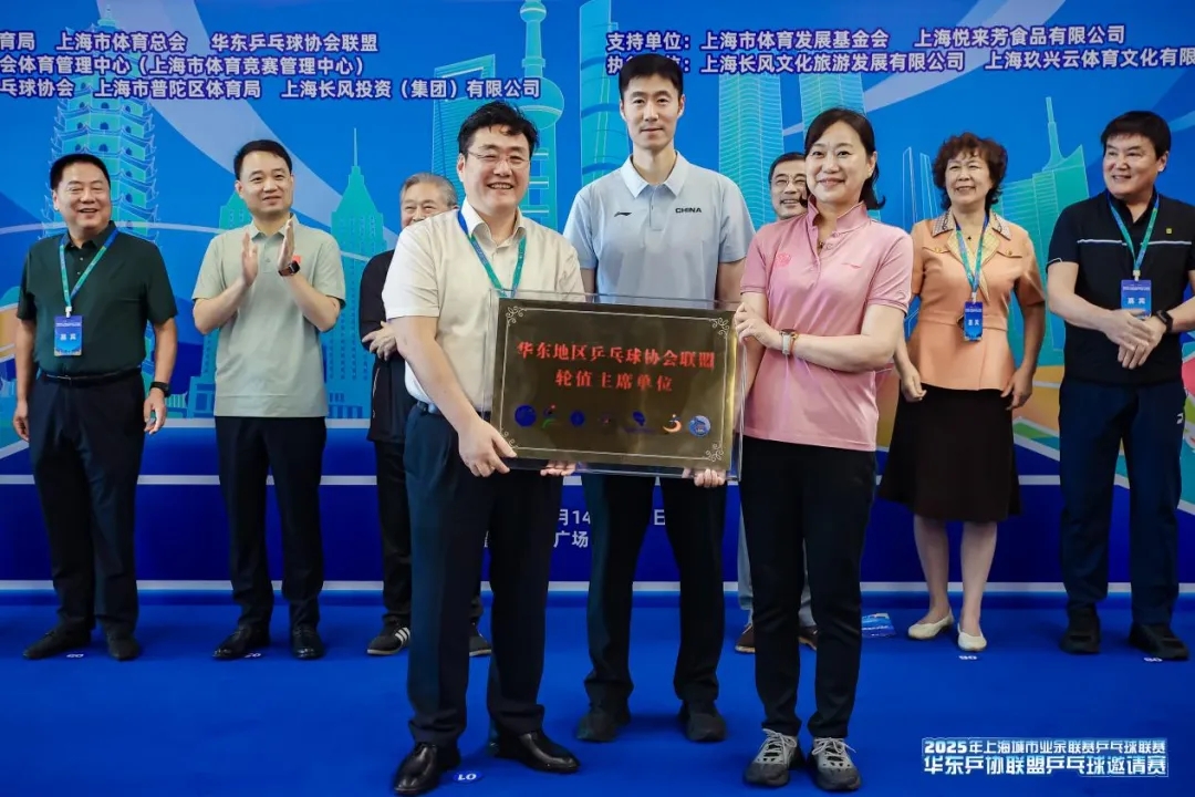 备受瞩目的华东乒协联盟主席单位铭牌交接仪式上,上海市乒协与江苏省乒协完成交接,中国乒协主席王励勤现场见证这一历史性时刻,标志着联盟轮值机制的有序传承。随后,王励勤主席向承办地普陀区赠送纪念球拍,肯定该区作为 “乒乓球热土” 的群众基础,相信未来“国球热”也会在普陀区的每一个角落愈燃愈烈。