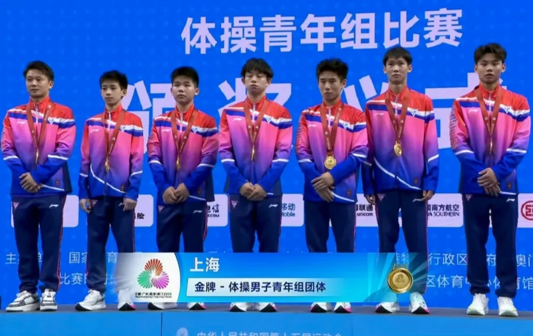 在近期结束的全国第十五届运动会体操青年组男子团体决赛中,由普陀少体校培养输送的陈振秋、李元壮和上海其他四名选手代表上海队出战,团结合作,顽强拼搏,以608.016分夺得冠军!