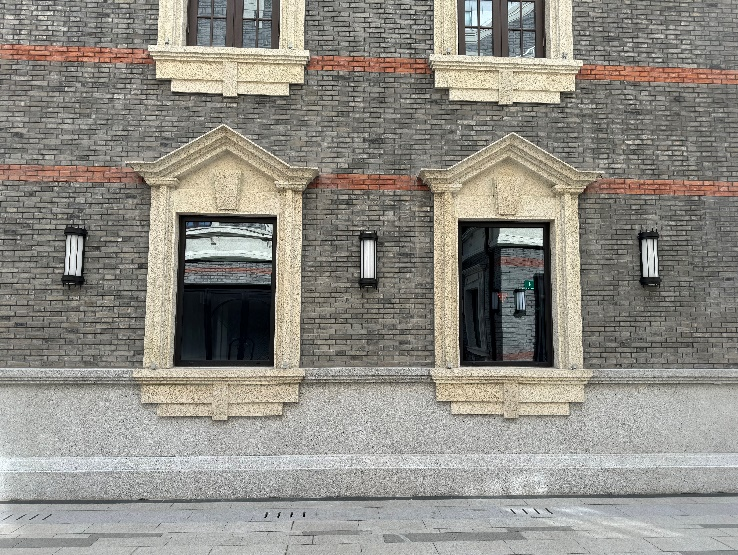 施工单位还充分保护并利用有价值的特色构件,予以修缮和再利用。以外墙砖立面为例,建设过程中保留了原建筑部分结构完整,强度合规的砖块、瓦片等进行二次加工使用,不足部分则再通过采购相近年代的老砖进行补充。建设现场曾贴设有16种各形式的样板墙进行比选,从颜色、大小、纹理,结合大理石的颜色配比、参考老建筑的原本颜色等方面综合考量,只为最大程度展现原始风貌。