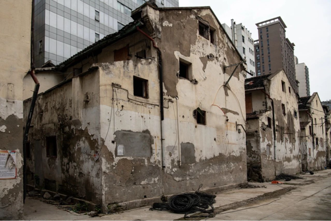 回溯历史,统益里地块房屋原建于上世纪二三十年代,由统益里、养和村、人和里三片旧式里弄所组成。由于年久失修,建筑质量严重损坏,内部墙体开裂、木梁腐烂,外部更是与繁华熙攘的长寿路格格不入。“当时我们还是煤卫合用,全家4口人就挤在9.6平方米的亭子间里,生活十分不便。”曾居住在统益里的居民这样回忆道。