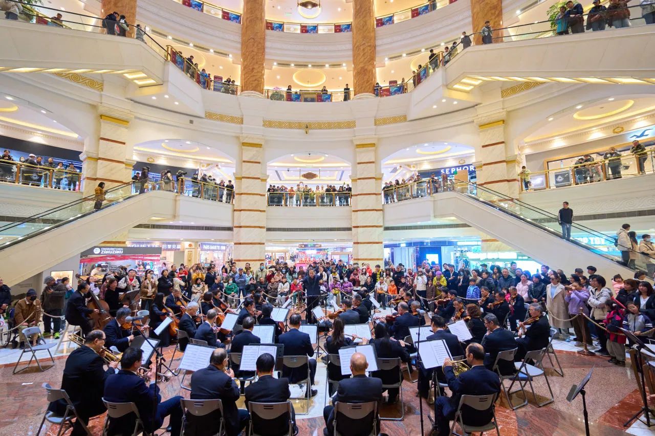 活动当天,上海大众乐团带来的交响音乐会同步上演。悠扬的旋律时而激昂澎湃,时而温柔细腻,吸引了大批消费者驻足观赏。