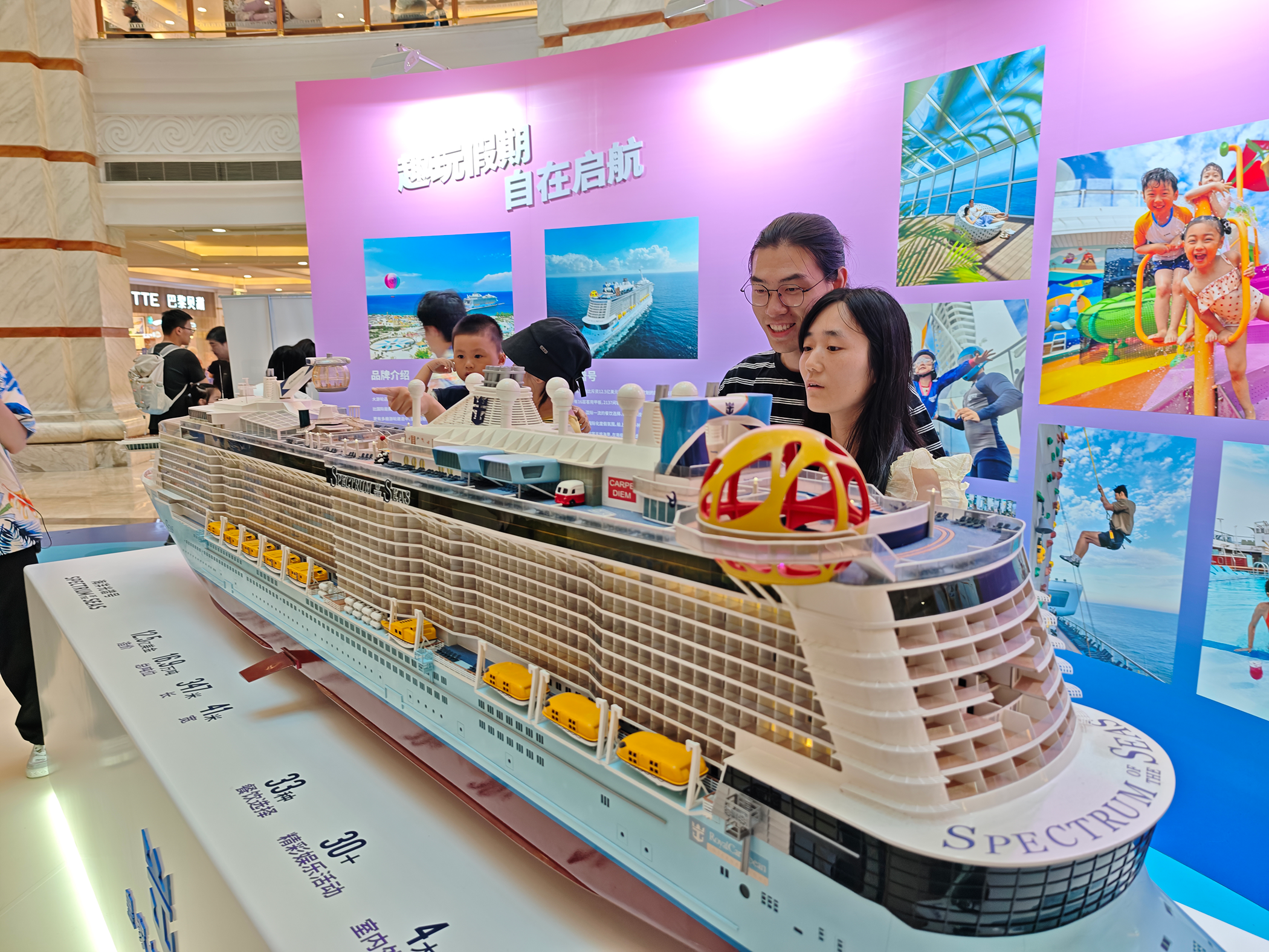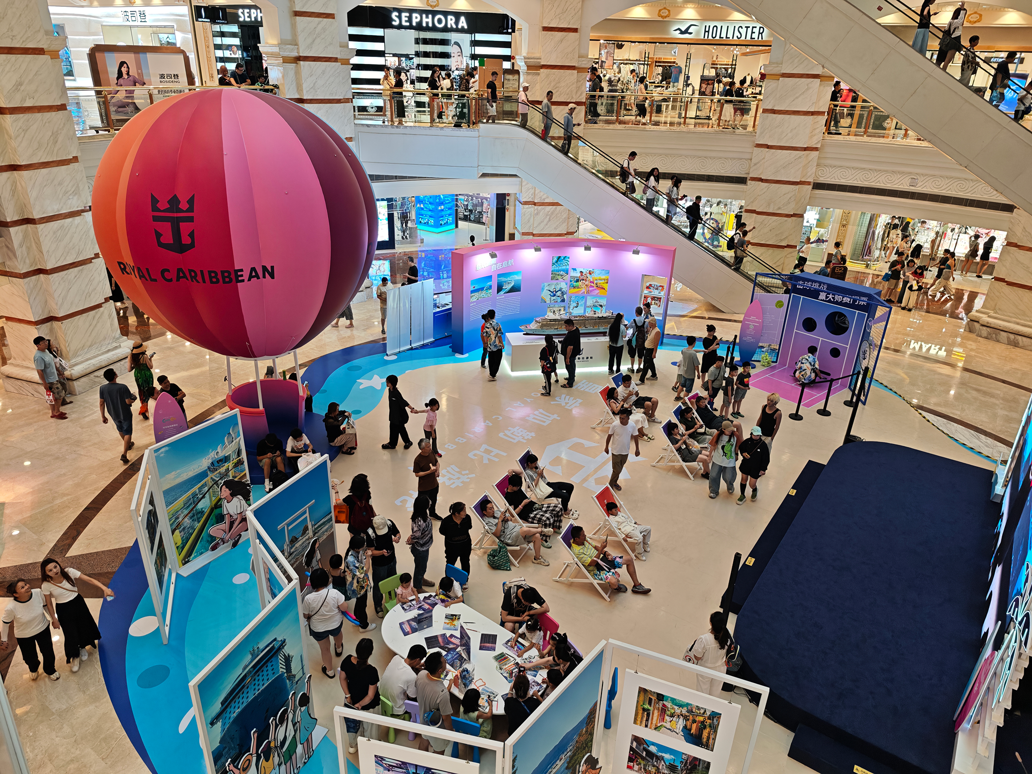 “去年,品牌首次在环球港举办邮轮节快闪活动,活动期间吸引了近3万现场观众,收到了许多预订意向。今年游轮出游热度高,我们在环球港加大了推广力度,品牌展示位置换到了环球港最具人气的太阳厅中庭,面积更大、活动更多。”皇家加勒比游轮高级产品市场经理张森笑着说,皇家加勒比游轮与“环球港”商场名字可谓“般配”,环球港是游轮的“港湾”。