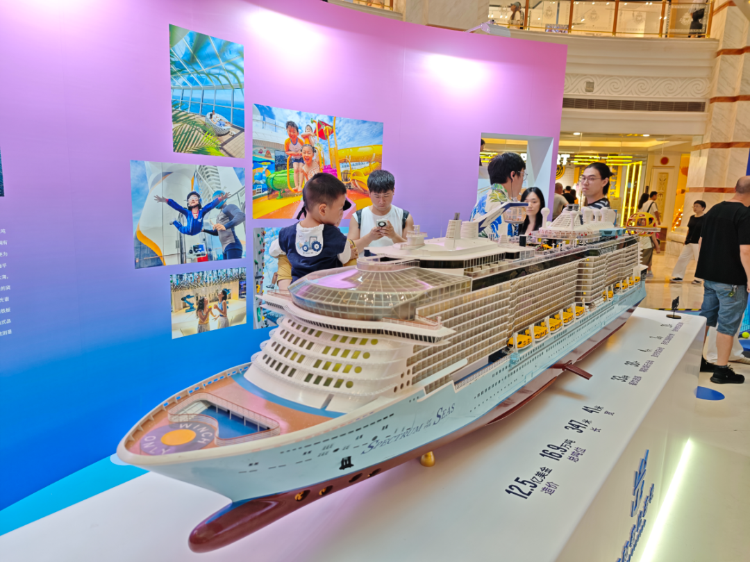在邮轮经济方面,环球港策划了“环球奇幻航程”主题打卡活动,串联起皇家加勒比主题快闪、进博市集、52楼环球观光台等多个特色点位,让市民游客在集章打卡获得精美礼品的同时,充分感受环球港丰富的业态和特色空间。会员消费赠礼活动也同步开展,活动期间累计消费排名第一的会员将获得皇家加勒比游轮船票大奖。