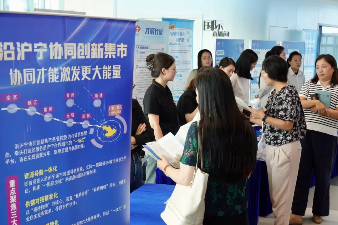 今年以来,普陀区与江苏南京、无锡、常州、苏州、南通、镇江、泰州、扬州8个城市签订合作备忘录,推动优势互补、资源互通;在科研学术、技术研发、产业对接、文旅融合、国际市场开拓等领域,促成沿沪宁区域50余项合作落地。