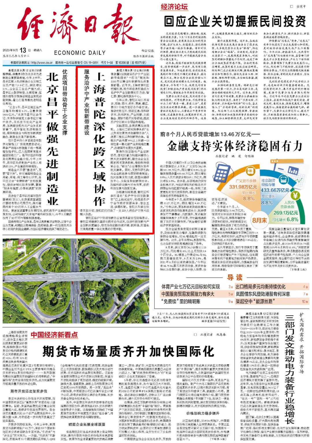 《经济日报》头版:上海普陀深化跨区域协作,服务沿沪宁产业创新带建设 2025-09-15 来源: 上海普陀