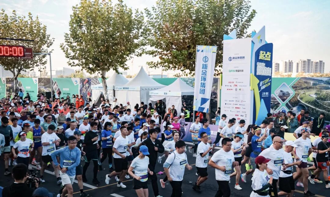 起跑仪式上,区委书记胡广杰,区委副书记、区长赵亮,区人大常委会主任谈上伟,区委副书记赵勇,市体育局一级巡视员宋慧,副区长王珏和新金环集团、奇富科技、李宁体育等企业负责人共同为2025新金环上海Top Run 10公里精英赛鸣笛发令。