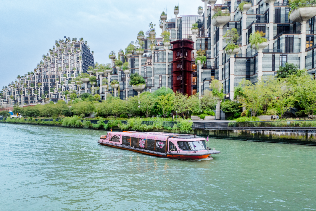 天安千树一楼的AZUL ITALIANO餐厅是一个典型案例。这家主打地中海风情的意式餐厅,与悠游苏州河合作推出餐饮联名航班。游客可以一边游船一边用餐,在苏州河上品味意式美食。据统计,航班自推出以来,已开行109次航班,接待近千人次,实现餐饮店与苏州河游船的双向导流。