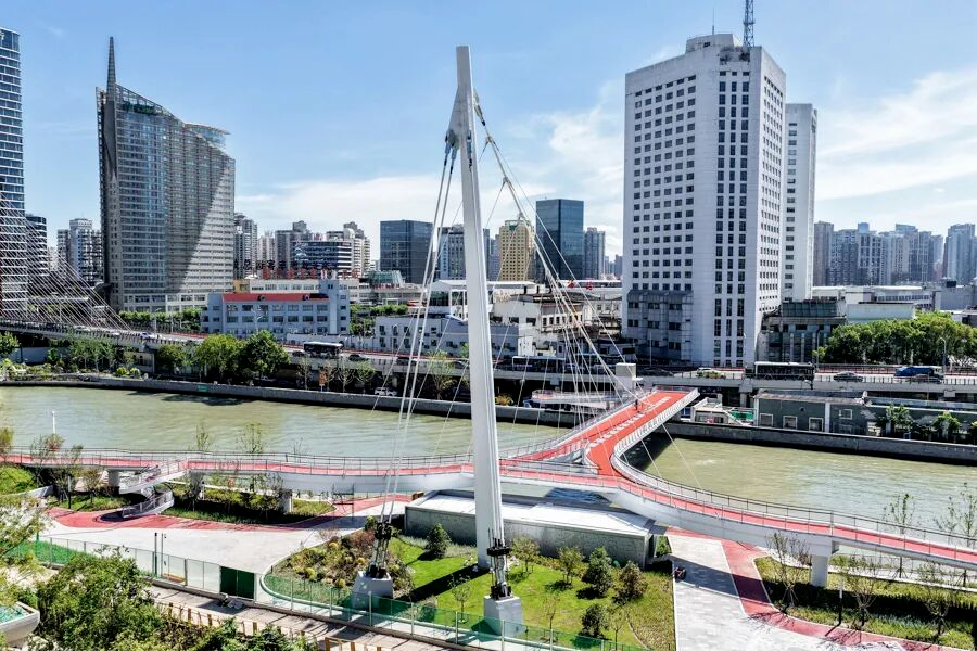 2025年9月,苏州河上首座独塔悬索桥百合桥正式开放通行。这座桥长245.75米,西连M50创意园和天安千树,东接静安区沿河步道和恒丰路桥辅道,将长寿路桥到昌化路之间超1公里的岸线空白填补,两岸居民跨河时间缩短至5分钟。