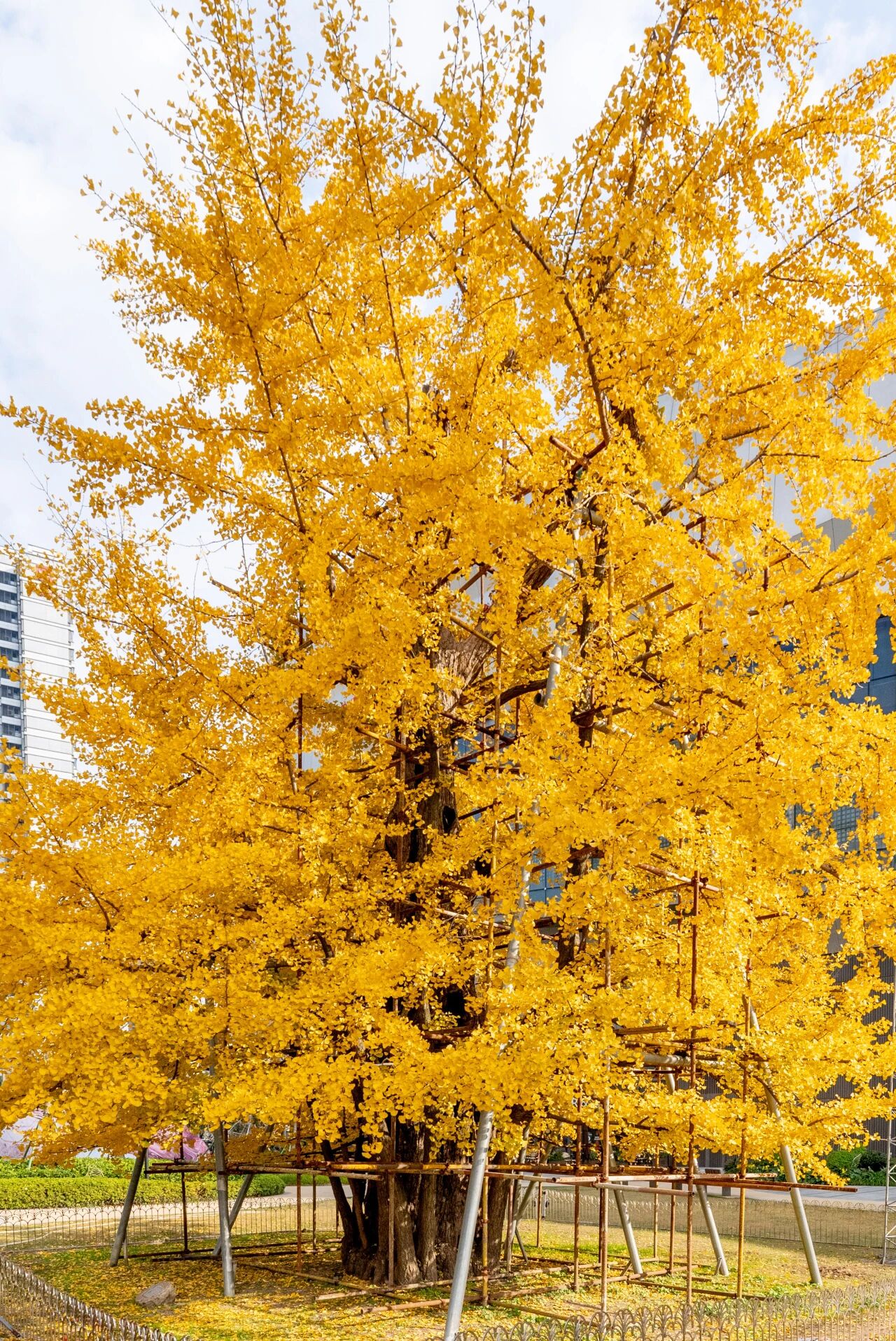 结束老街的市井漫游后,可移步上海真如环宇城 MAX,解锁银杏打卡的现代玩法。 广场上编号 “0057” 的 500 年古银杏,是普陀区最早被纳入保护的古树名木,深秋时节满目金黄,为银杏爱好者必打卡之地。