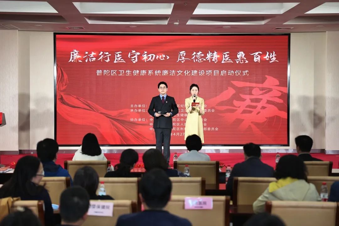 为深入贯彻落实党的二十大精神,坚定不移推进全面从严治党,深化拓展区卫生健康系统廉洁文化建设,4月27日下午,“廉洁行医守初心 厚德精医惠百姓”——2023年普陀区卫生健康系统廉洁文化建设项目启动仪式在区利群医院举行。区委常委、区纪委书记、区监委主任高路致辞。市纪委监委宣传部副部长王华萍,区纪委副书记、区监委副主任俞斌,区纪委监委第六派驻组组长伍贤民,区卫生健康工作党委书记邓海巨出席活动。