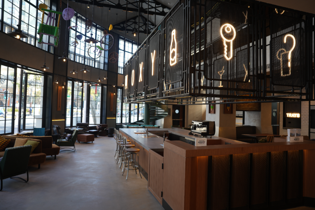 位于长寿路街道澳门路江宁路泰来坊地块,这座承载着1930年代上海记忆的里弄建筑群,已摇身一变,成为知名酒店集团万豪旗下的普陀MOXY酒店。 据悉,普陀MOXY酒店将成为万豪集团今年在上海开业的首家酒店。目前,酒店已进入内部装修收尾阶段,计划于2025年4月开业迎客。 普陀MOXY酒店 充满工业元素的大堂 MOXY酒店是万豪国际集团旗下的精品生活方式品牌,全称为Marriott of X&Y Generation,专为X、Y千禧新生代旅行者打造。MOXY酒店的设计通常充满活力和创意,不同城市的MOXY酒店会根据当地的文化和历史元素进行个性化融入。例如,南京江宁的MOXY酒店以“卡通鸭”为IP,以“摄影”为主题;上海虹桥MOXY酒店则采用了Art Deco装饰风格,为酒店增添了艺术气息。 旋转楼梯 据酒店品牌方相关负责人介绍,普陀MOXY酒店主打海派工业风。泰来坊周边区域作为中国近代民族工业发祥地,曾云集纺织厂、印染厂、啤酒厂等工业设施,因此在设计时保留了不少独特的工业元素,例如工厂印象涂鸦、锯齿风格的装饰品等。 吧台 在普陀MOXY酒店大堂内,两层楼高的大片落地窗带来通透的视野。万豪集团的品牌标识已摆放到位;台球桌、老式电话亭、方形厨房酒吧以及十余个休闲座椅,为宾客提供了宽敞的交友空间。沿着一楼复古旋转楼梯向上,还可以看到镶嵌着石库门雕花元素的图书馆、会议室和健身房。此外,普陀MOXY酒店还是一家宠物友好型酒店,“毛孩子”们也可愉快入住。 房间内海派风情的细节 普陀MOXY酒店共有92间风格迥异的客房,并配置了40余个车位。客房内,裸露的砖墙、抛光的混凝土地板以及霓虹灯光,既保留了历史痕迹,又注入了摩登活力。值得一提的是,一楼部分客房配置了庭院,五楼的部分房型层高最高处超过四米,并配备了电动采光通风窗,为市民游客打造独特的海派风情入住体验。 酒店地址位于:普陀区澳门路409号。