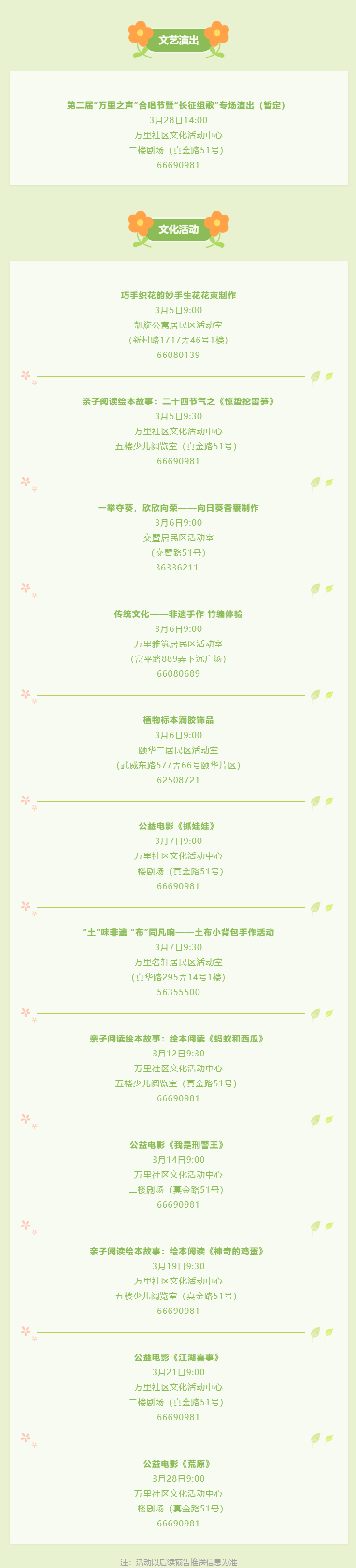 精彩抢先看 | 万里社区文化活动中心3月活动清单