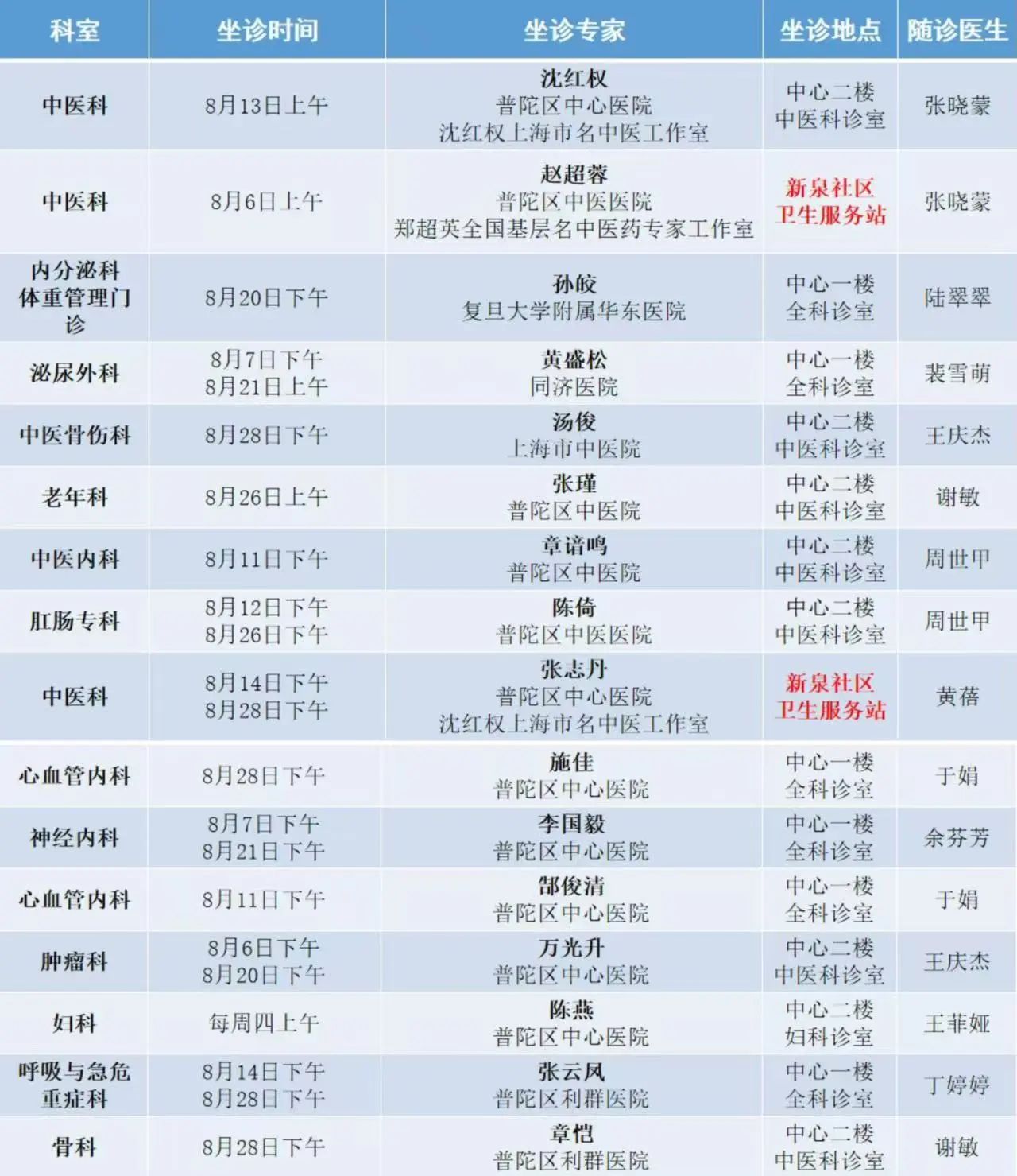 便民丨万里社卫“全科+专科”联合门诊8月最新安排→