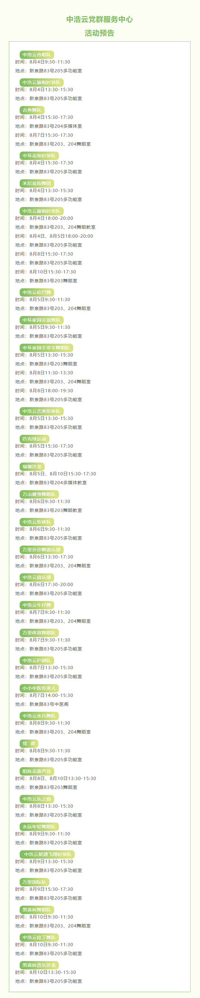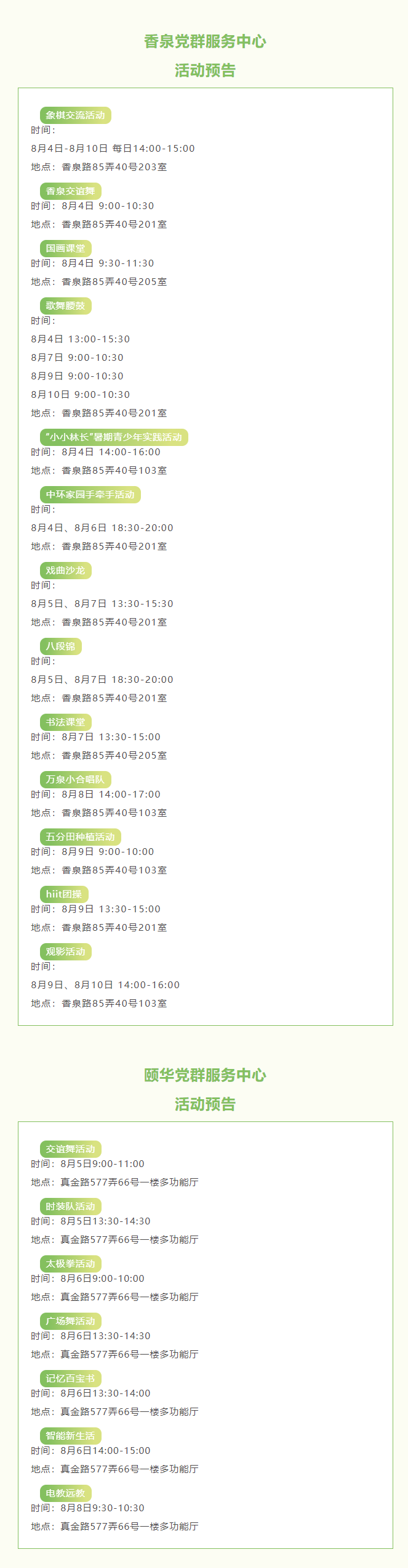 预告丨中浩云、香泉、颐华党群服务中心本周活动提前知道→