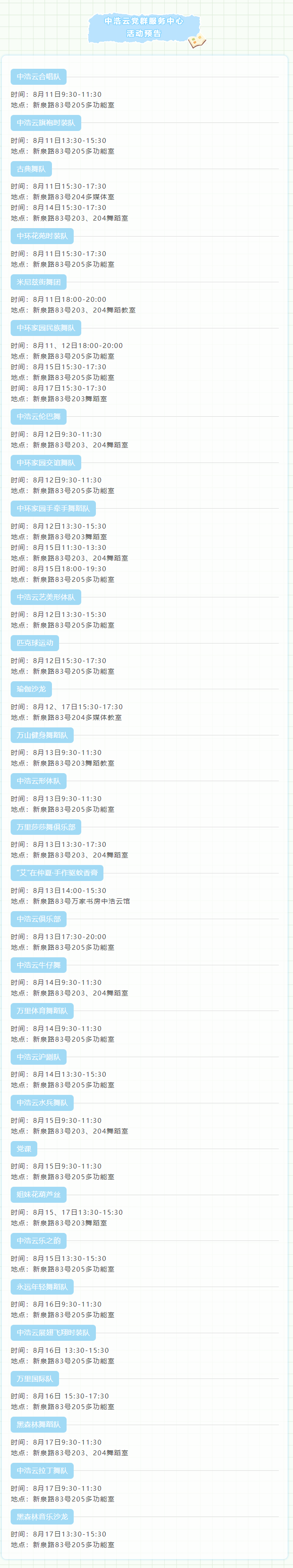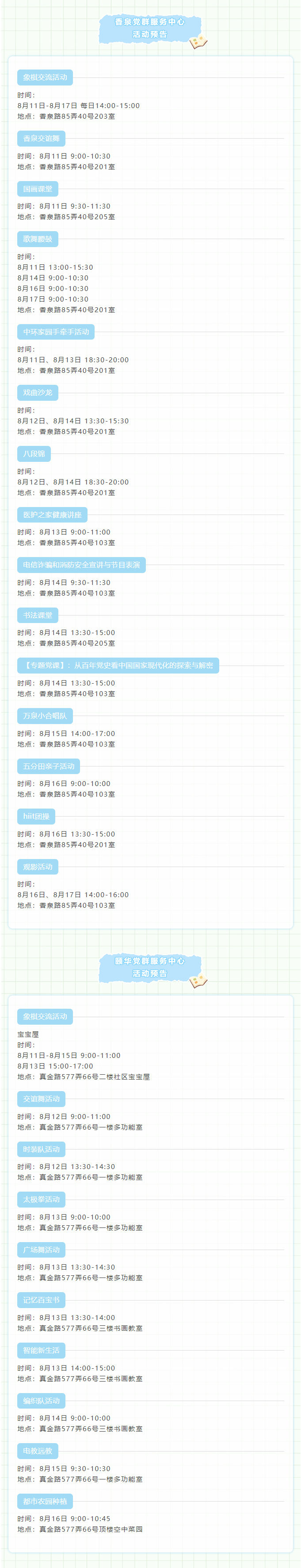 预告丨中浩云、香泉、颐华党群服务中心本周活动提前知道→