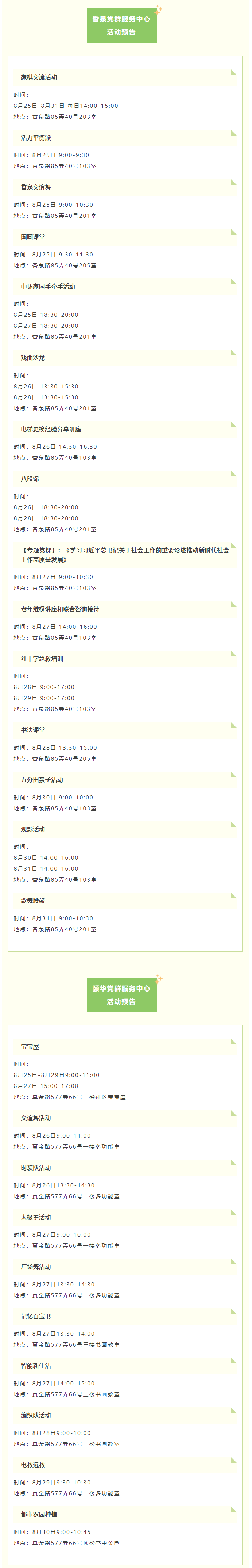 预告丨中浩云、香泉、颐华党群服务中心本周活动提前知道→
