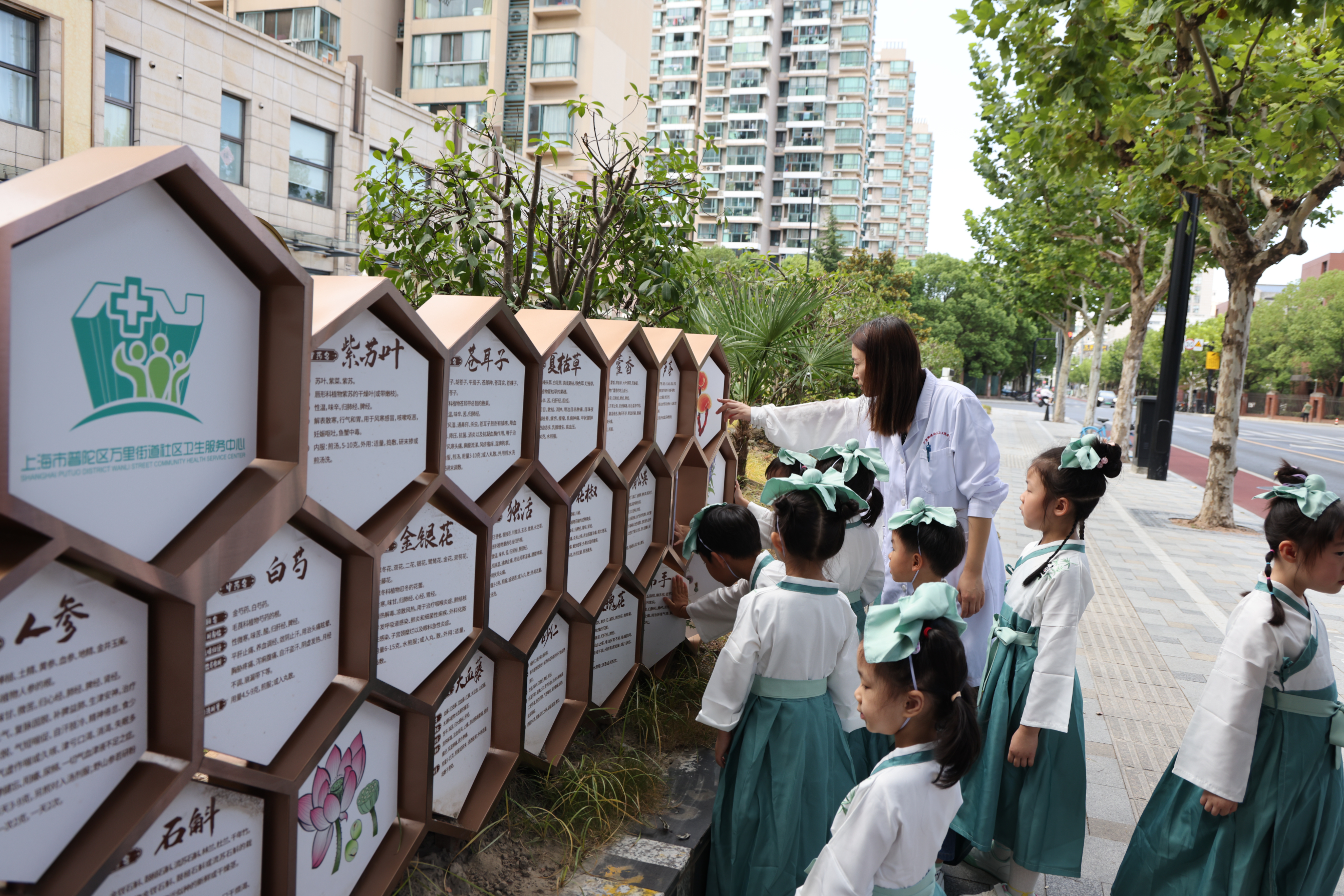 活动当天邀请了社区的大朋友、小朋友参与中医药体验活动,通过中医茶饮、中药识别、穴位识别、共练八段锦等环节,亲身感受来自传统中医药文化的独特魅力。