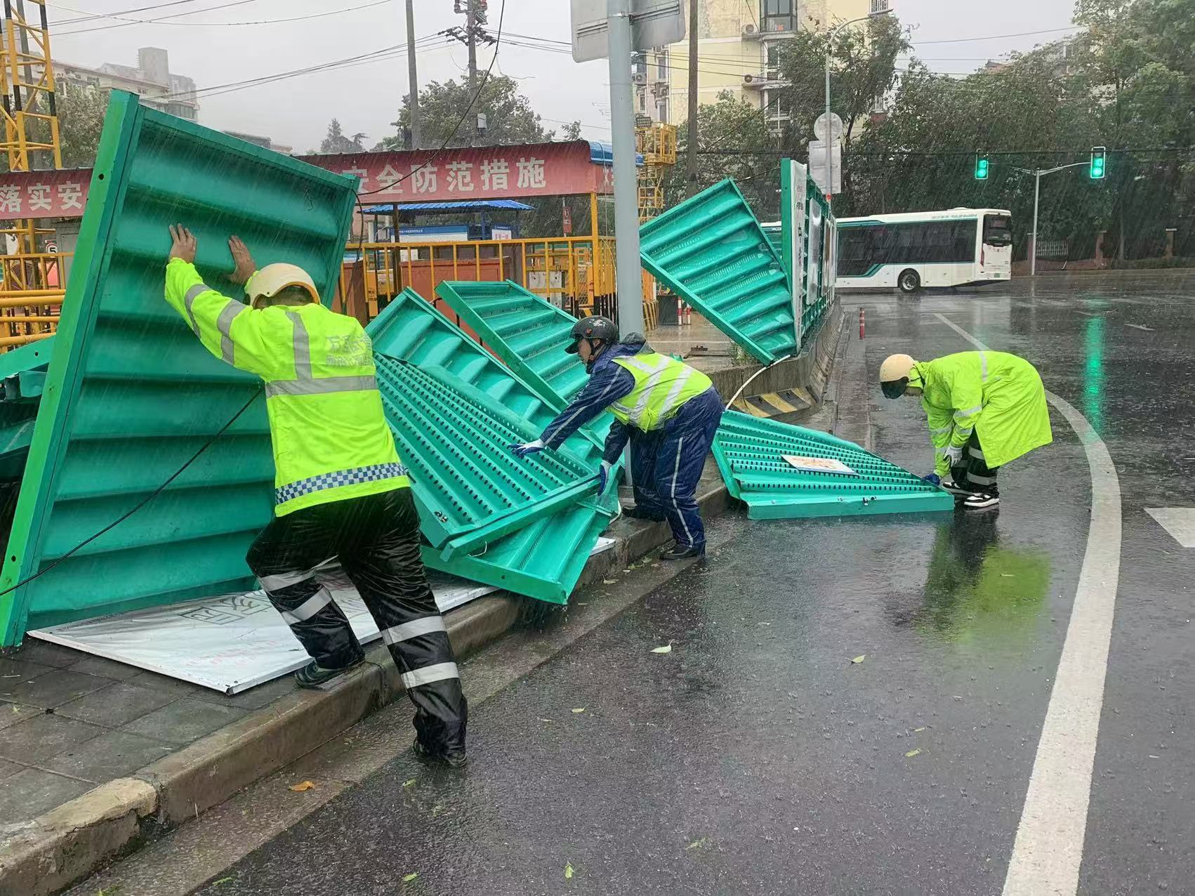 抗击台风,是一场与时间的赛跑。从凌晨到深夜,又从深夜到凌晨,风雨无阻,万里街道市容服务队员们24小时不间断,穿梭在风雨中,进行细致的巡逻工作。行至各处路段时,发现道路上有树枝被强风刮断,树木、围挡、杂物等横亘路中,他们及时上报并迅速行动,合力将杂物移至安全地带,妥善处置,确保道路畅通无阻。同时,为了应对台风可能带来的排水不畅问题,在关键区域展开作业,清理管道内的淤泥,疏通下水系统。